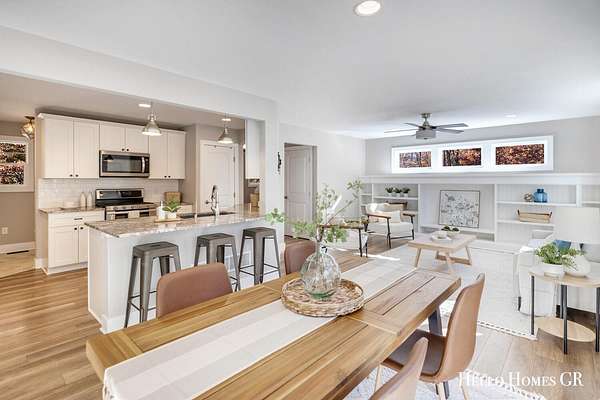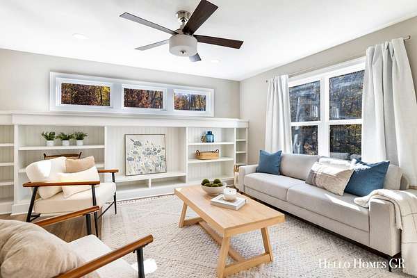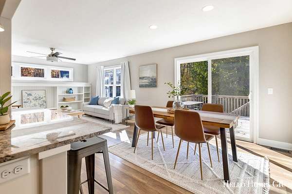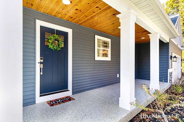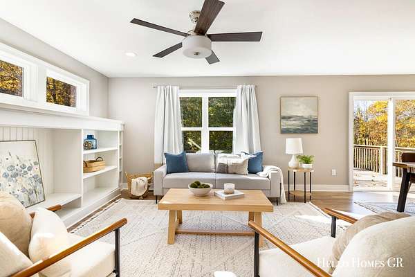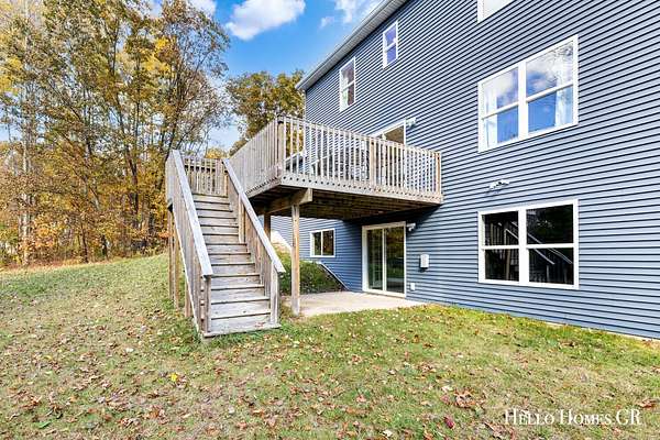 Say ''Hello!'' to this beautifully crafted 4 bedroom, 2.5 bath home located on 2.46 wooded acres! This property offers the perfect blend of modern comfort and country serenity, and is just minutes from downtown Lowell and steps from the Fred Meijer River Valley Trail. Custom built in 2017, this light-filled home features an open-concept main floor with a spacious living room featuring custom built-ins, a dining area with sliders to a large back deck, and a kitchen designed for entertaining - complete with granite counters, peninsula island, stainless steel appliances, and pantry. A flex room off the dining area provides the ideal space for a den, playroom, or office. Additional main floor highlights include a mudroom with built-ins, half bath, and a workshop off the garage. Upstairs, the serene primary suite offers a walk-in shower and walk-in closet. Three additional bedrooms, a full bath, and a laundry room with sink complete the upper level. The partially finished walkout basement features a large rec room with bar and a bonus room perfect for guests, plus ample storage or future finishing potential. The patio off the basement is pre-wired for a hot tub. A 3-stall garage includes a Level 2 vehicle charger in the third bay. Don't miss your opportunity to own this beautiful home! Schedule your showing today!