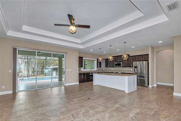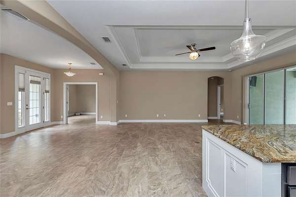 - Ceiling Fans(s), High Ceilings, Kitchen/Family Room Combo, Open Floorplan, Solid Wood Cabinets, Split Bedroom, Stone Counters, Thermostat, Tray Ceiling(s), Walk-In Closet(s), Window Treatments