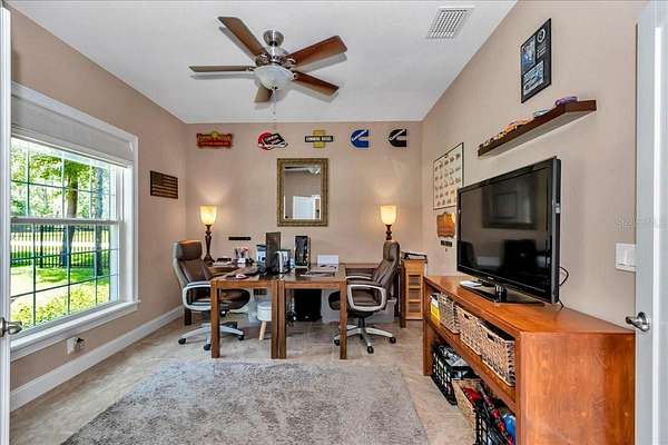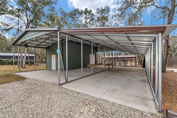 LOOKING FOR SOME PRIVACY BUT STILL IN TOWN??? LOOK NO FURTHER! Property is aggressively priced to sell...don't wait! Welcome to this CUSTOM BUILT, meticulously maintained & MOVE-IN READY home nestled on 8.75 acres in a serene & private setting, bordering the FL Greenway Preserve. Plenty of room for boats, UTV's, RV's, equipment, etc. The home & outbuildings sit on approximately 1.5 manicured acres; an additional 2 acres include a conservation area & the remaining acreage is wooded w/cleared trails--perfect for hiking, UTV adventures & peaceful nature walks. This ONE OWNER ESTATE offers beautiful finishes, thoughtful design & the freedom of no HOA--perfect for those seeking privacy & flexibility. This 2018 built, well-designed open concept, split floor plan features 3 bedrooms, 2 bathrooms, and a spacious OFFICE--ideal for remote work, additional bedroom or den. Inside, you'll find HIGH CEILINGS throughout, a striking double tray ceiling in the great room, arched hallways, ceiling fans w/integrated lighting, wood cased double paned windows w/custom window shades, wood cased custom doors, 6 inch baseboards & timeless architectural elements. There is a hard wired alarm system including out building, Starlink internet, hard wired cell booster system, exterior lighting, water softener & filter. The heart of the home is the gourmet kitchen, showcasing a massive center island w/custom pendant lighting, granite countertops, tile backsplash, stainless steel farmhouse sink, stainless steel appliances, solid wood cabinetry w/designer hardware & a large closet pantry. A large window provides peaceful backyard views. The spacious primary suite features dual walk-in closets w/pocket doors & a spa-like ensuite w/soaking tub, large tiled glass enclosed shower, dual vanities, linen closet & private water closet. Two spacious secondary bedrooms share a full bathroom w/tub-shower combo w/glass doors & a linen closet. Laundry is a breeze in the oversized interior laundry room w/utility sink. A spacious 2-car attached garage, equipped w/built-in shelving, water line for icemaker, remote garage door opener & keyless entry. Step outside & enjoy the Florida lifestyle w/screen-enclosed, heated saltwater pool, covered lanai w/dual ceiling fans & gorgeous views of the wooded property & surrounding nature. You will find this area very private & will appreciate the mature & meticulously maintained landscaping complete w/custom concrete curbing & an automatic irrigation system. Outbuildings & land features a gravel driveway to the back w/automatic solar gate & remotes, a large 40' x 44' OUTBUILDING w/metal roof, concrete floor, including a 12' x 30' integrated WORK SHOP w/roll-up & walk-in doors, WATER, ELECTRIC & a 30 amp generator hookup. An additional 24' x 25' METAL POLE BARN w/gravel base & 9' x 24' lean-to is located directly behind the main outbuilding for convenient additional storage and/or work space. Situated on a quiet, private, paved road, lined with custom homes & bordering the expansive Greenway Preserve, this exceptional property offers unmatched privacy, tranquility & natural beauty--just MINUTES from Hwy 200, I-75, Hwy 484, shopping, dining, medical facilities & all that Ocala has to offer. This is a truly ONE OF A KIND PROPERTY--schedule your private tour today & discover the perfect blend of luxury, freedom & nature-inspired living. Note: this property is not zoned for horses.