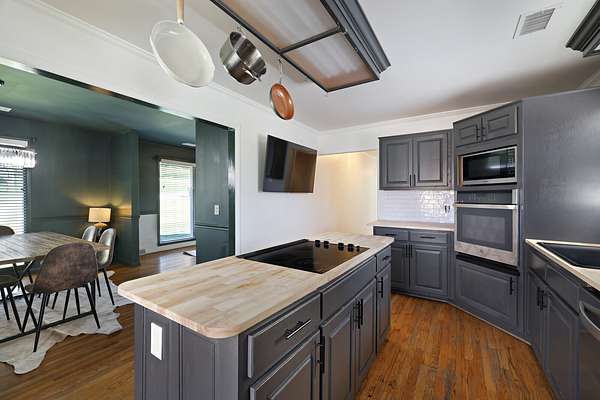 Freshly painted and exquisitely remodeled, this 4-bedroom, 3-bath home sits on 2.25 acres and offers exceptional space and versatility. Featuring two kitchens, including a fully finished basement with a fireplace, this home is ideal for multi-generational living or entertaining. The open floor plan showcases high-end finishes, a large kitchen island, stainless steel appliances, and a spa-like oversized shower.