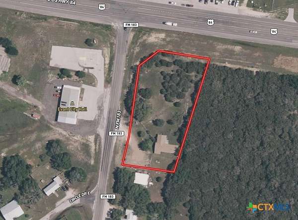 Don't miss this unique opportunity! Located at 436 N FM 183 in Evant, TX, this 2-bedroom, 2-bath home offers approximately 2,074 sq. ft. of living space (per Coryell CAD) on a spacious 1.637-acre corner lot with highway frontage on both Hwy 84 and FM 183. Whether you're searching for a home, an investment property, or a commercial conversion, this property fits the bill. Additional features include city water and sewer, fiber optic internet service, and location within the Evant ISD. It's situated directly across from City Hall and the Fire Department, adding to its visibility and convenience. Centrally located, it's just 30 minutes from Gatesville, Hamilton, Lampasas, and Goldthwaite, and only an hour from Waco, Temple, Killeen, Copperas Cove, Brownwood, and Stephenville. With its flexible use and prime location, this is a rare find in the heart of Evant! Adjoining lot with shop also for sale.