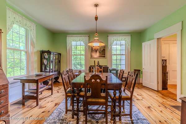 Sellers are negotiable(Appraisal on File for Review when Submitting a offer.)From the farm to the table. This farm come with 115 acres. 15 acres along the river are prime for planting. Location Location Location Great hunting location it here you can fish. Enjoy the land. This Farmhouse was built in the 1900. This home was updated. The five bedrooms are spacious and there is walk in closet with hardwood floors. Home boasts a eat in kitchen with tile floors, Kitchen is so spacious it has a kitchen table that seats 6 people, Two Dining room 1st one you have a view of the pond with a waterfall, and you can walk out to the three-season sunroom perfect for enjoying the outdoors comfortably. 2nd Dining room is set back in time giving it a classic or vintage feel. Beautiful wood floors That have been redone. You could have a bedroom on the first floor if you desired. Newer windows that enhance energy efficiency and aesthetics. A distinctive red tin roof on the farmhouse, adding to its charm. A small shed near the road that they sold eggs and fresh vegetables. Barn 1:12300 sq.tf., built 1976 use to house chicken's, Barn 2:11850 sq. ft., built .1901. (Needs TLC- probably). The 15 acres along river across the road where they planted corn, tomatoes and cucumbers. There also is a 7-mile Rail Trail along the river.