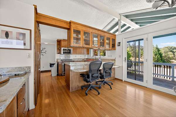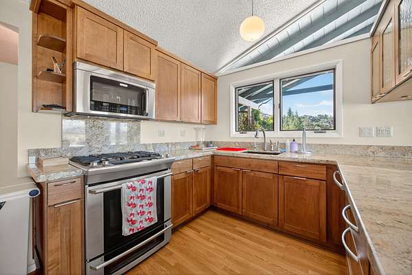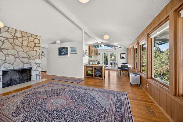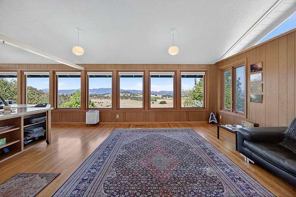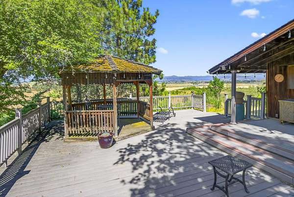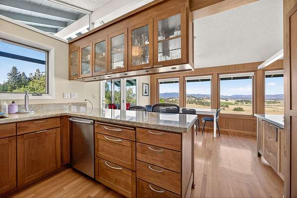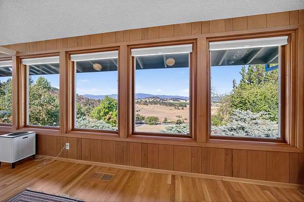 Custom-built home with stunning panoramic views of the Rogue Valley! Set back from the road for added privacy, this 3 bed, 2.5 bath gem features an open floor plan, rich hardwood floors, and floor-to-ceiling Pella windows that flood the home with natural light. A newly installed A/C unit ensures year-round comfort. . The beautifully remodeled kitchen includes custom cabinetry, granite countertops, built-in refrigerator, and an Electrolux dual-fuel double oven range. Enjoy cozy evenings with wood-burning fireplaces in both the family and living rooms. The primary suite offers an updated bath with granite, tile, and fresh paint throughout the home. Outdoors, you'll find a 24x30 shop, greenhouse, irrigated gardens (MID), multiple decks, and plenty of space for entertaining or relaxing in nature. A rare blend of comfort, style, and breathtaking views!