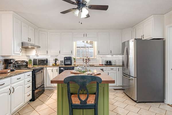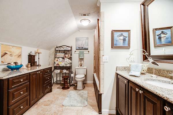 This beautiful custom-built home is one you don't want to miss--packed with upgrades and set in a peaceful location with no city taxes. The spacious, open kitchen offers abundant counter space and cabinetry, new granite countertops, and a pantry conveniently located in the laundry room. The extra-large dining area is perfect for gatherings, and just beyond the kitchen, a large covered porch overlooks the meticulously landscaped backyard--an entertainer's dream for music, food, and fun. Enjoy quiet evenings on the covered front porch with a sitting area ideal for watching sunsets. Inside, luxury vinyl flooring flows throughout the home, and the hall and bedrooms feature four walk-in closets. The primary suite includes a walk-in shower for added comfort. Upstairs is a fully equipped in-law, teen, or guest suite, complete with its own kitchen, bathroom, living area, and bedroom with two built-in twin daybeds and two oversized walk-in closets. A salon bath and an additional washer/dryer hookup are located just off the massive floored walk-in attic.