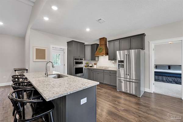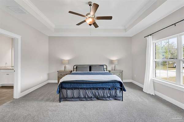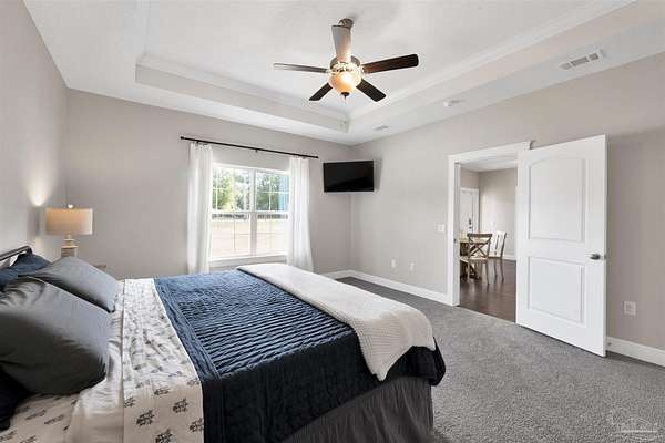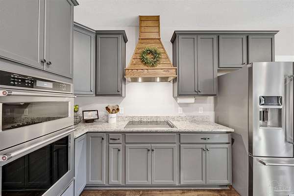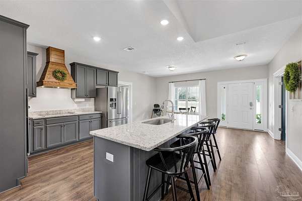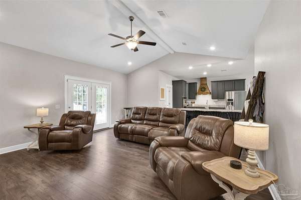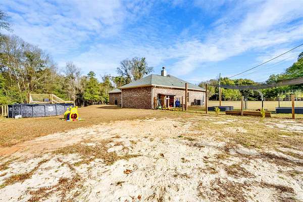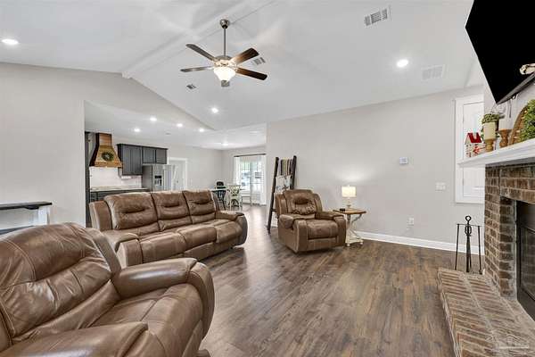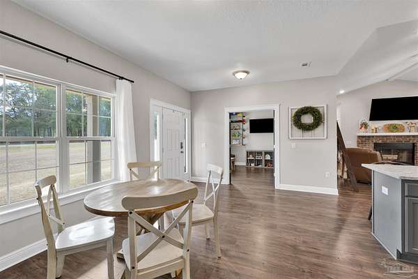 Immaculate and move-in ready, this stunning 4-bedroom, 3-bath home is nestled on a peaceful 1.82-acre lot, offering the perfect blend of space, comfort, and privacy. Designed with an open living concept, the home features luxury vinyl plank flooring throughout all main living areas for both style and durability. The great room is open and spacious, highlighted by cathedral ceilings, a cozy wood-burning fireplace, and French doors that lead to the backyard-ideal for indoor-outdoor living. The dining area flows seamlessly into the kitchen, which is well-appointed with a center island, granite countertops, breakfast bar, stainless steel appliances, and a charming wood-encased hood vent that adds warmth and character. A dedicated office provides the perfect space for working from home or managing daily tasks. The split bedroom floor plan offers excellent privacy for the primary suite, featuring a large bedroom with plush carpet and a tray ceiling. The spa-like primary bath includes tile flooring, double vanities, a garden tub, a separate walk-in shower, and his-and-her walk-in closets. Three additional bedrooms are generously sized and include plush carpet, ceiling fans, and large closets. Two of the bedrooms share a Jack-and-Jill bath with tile floors, a single vanity, and a tub/shower combo, while an additional full bath offers the same finishes. Conveniently located off the kitchen, the spacious laundry room includes an exterior door leading to the backyard. Outside, the backyard is perfect for entertaining with an open patio and a wooden deck that leads to an above-ground swimming pool-an ideal setting for relaxing and hosting friends and family. This immaculate home offers peaceful living with thoughtful design throughout.
