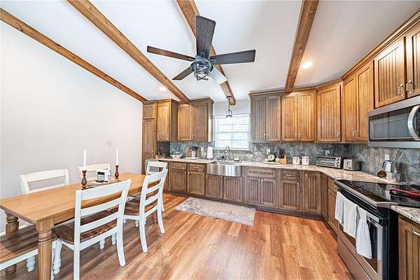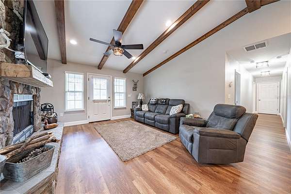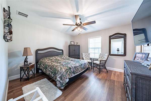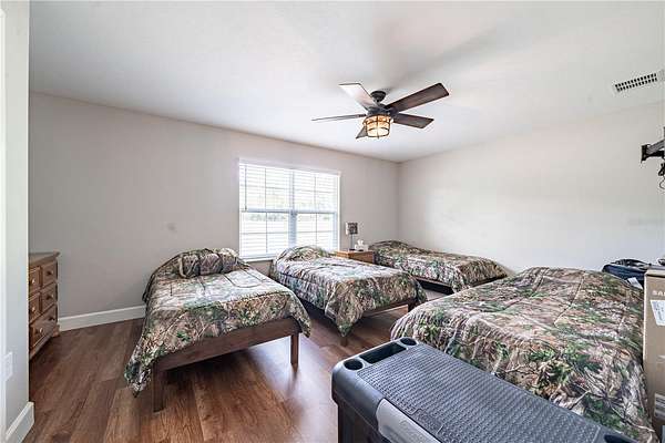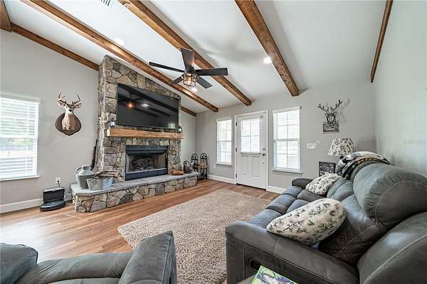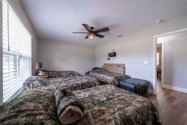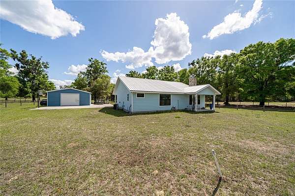Privacy, Peace, and Proximity! This 2020-built home sits on 5 acres of beautiful North Florida land, offering the ultimate rural escape. The 2BR/2BA floor plan maximizes every inch with vaulted ceilings, wood laminate floors, and a modern kitchen. Outdoor features include a large garage/workshop building on a slab, perimeter fencing, and a gated entry. Located just a short drive from Ichetucknee Springs State Park and the Santa Fe River, this is the ideal home base for outdoor enthusiasts. No HOA and plenty of room for your RV, boat, and animals. Schedule your tour today!