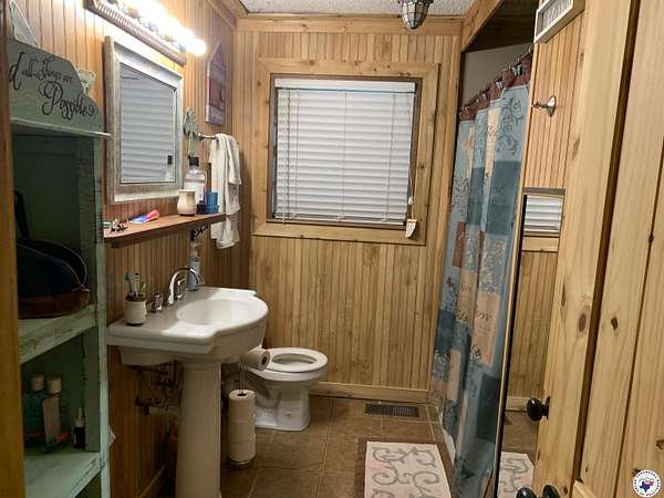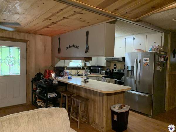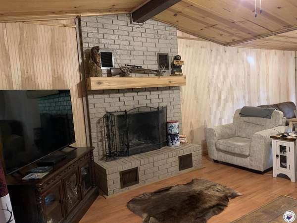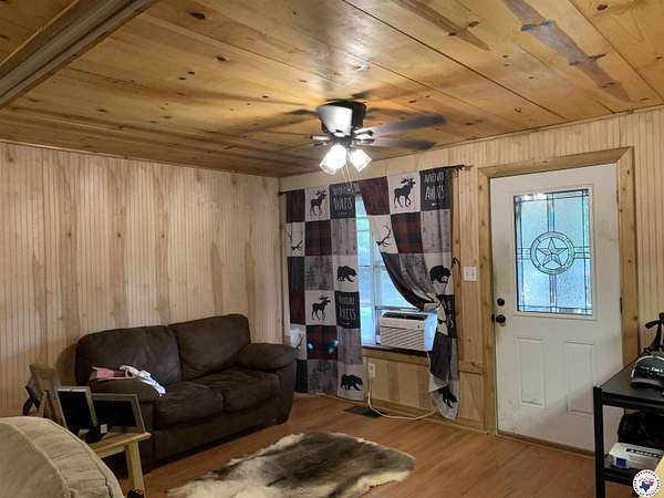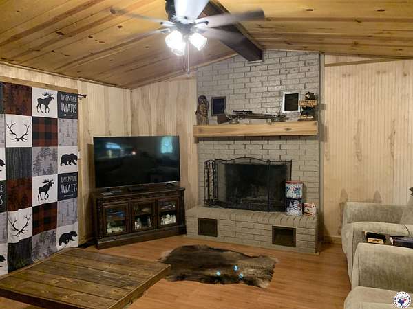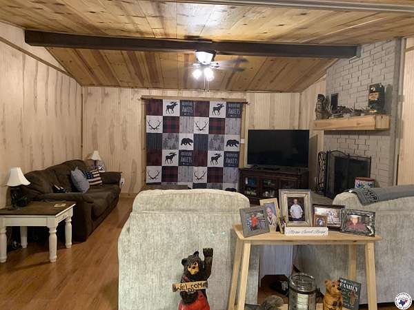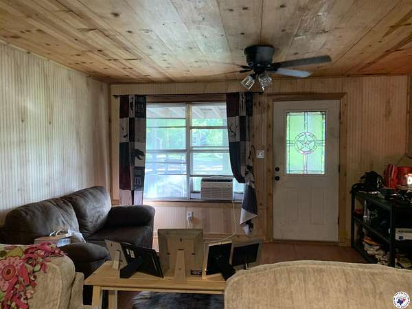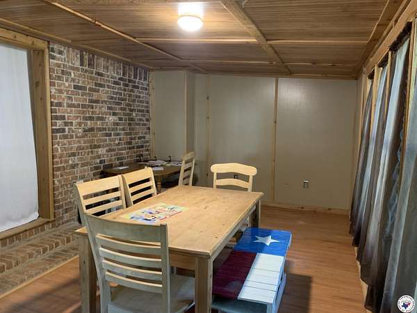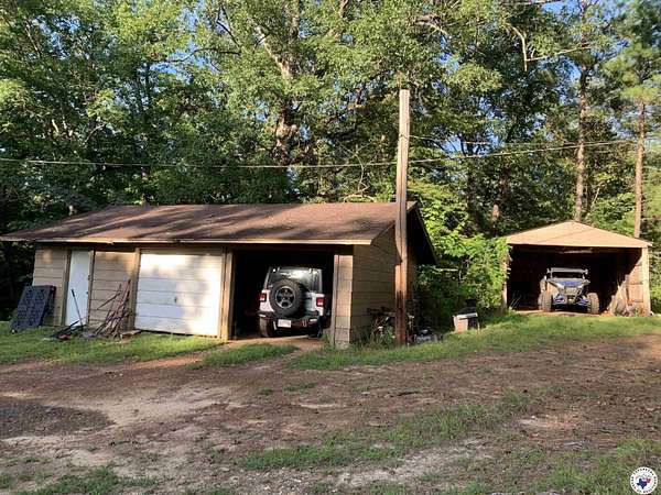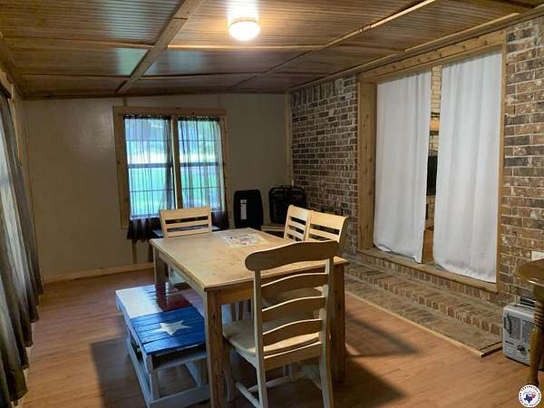 Tucked away on a peaceful 2-acre wooded hillside between Atlanta and Linden, this clean, charming 2-bed, 1-bath country home offers cozy living surrounded by nature. This all-electric brick cabin-style home sits on pier and beam with a metal roof and is supplied by a private well. The inviting covered front porch leads into a warm den featuring a pitched southern pine ceiling and a brick wood-burning fireplace with blower that can heat the entire home. The kitchen offers stainless appliances, a breakfast bar, and flows into a spacious bonus dining room with large windows and plenty of natural light. The bathroom features a pedestal sink and tub/shower combo. The oversized primary bedroom includes two large closets, while the second bedroom offers generous space and a built-in corner cabinet with bookcase. A large utility room adds function with storage, washer/dryer connections, and room for a deep freezer. Outside, the property boasts four outbuildings: a 2-car garage with roll-up doors, a large open-front garage perfect for ATVs or boat storage, a 20x40 3-stall open shed, and a pole barn with tall ceilings and two stallsGideal for RV parking. A rare mix of privacy, practicality, and priceGthis one is priced to sell! Call the listing agent today to schedule your private showing.