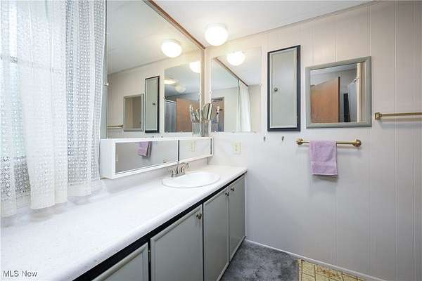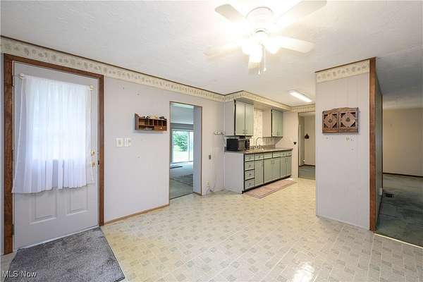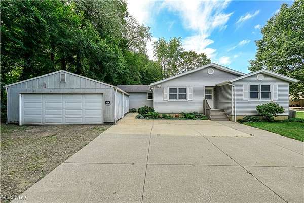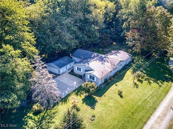 Welcome to this spacious and versatile ranch home nestled on just over 2 acres, offering nearly 2,600 square feet of living space! Set back from the road for added privacy, this unique property features 5 generously sized bedrooms, including a large primary suite with ensuite bath and a separate mother-in-law suite complete with its own full bath and kitchen-perfect for multi-generational living or guests. The home also offers a total of 3 full bathrooms, a living room open to the dining area, and a main kitchen with an additional eat-in space. The large family room is a standout with nature stone floors, decorative fireplace, and sliders leading to a private, tree-lined backyard-ideal for relaxing or entertaining. Additional highlights include a 2-car detached garage, two storage sheds, and a partial basement under the home's addition. This is a rare opportunity to own a large, flexible property with room to grow and personalize. There is another room with closet that doesn't have a exterior window, so it is not in the bedroom count, can be used as office or den.
