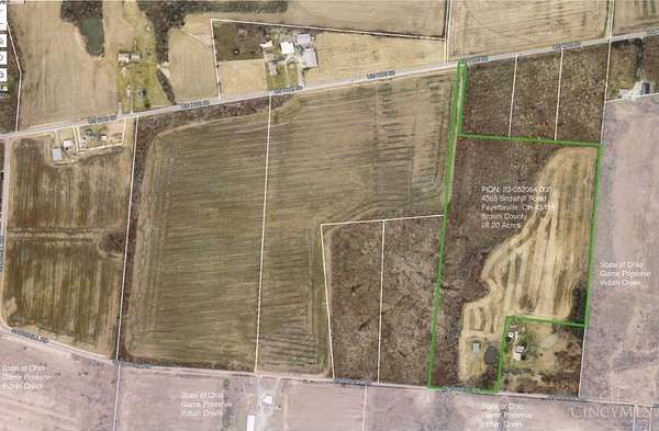 This scenic 28-acre tract offers the perfect blend of income potential, recreation, and privacy. This parcel is adjacent on 2 sides to the 1,695 acre Indian Creek Wildlife (an expansive preserve for hunting, fishing, hiking & a variety of other outdoor activities) making this a hunters paradise! Approximately 12 acres are tillable and currently used for winter hay, with the remaining 16 acres of mature woods. A small pond, approximately 8-10 feet deep and possibly stocked, adds both beauty and functionality. The Amish-built 48x36 pole barn (2002) features 14-foot ceilings, a concrete floor, two large 11 ft sliding doors perfect for equipment, storage, barndominium or workshop space. Gravel drive base already in place. No septic, well, or electric currently installed, but electric is at the street. Municipal water may be available next door (to be verified). Rare opportunity to own versatile acreage in a prime outdoor setting! Frontage on Route 50, current access on Snowhill.