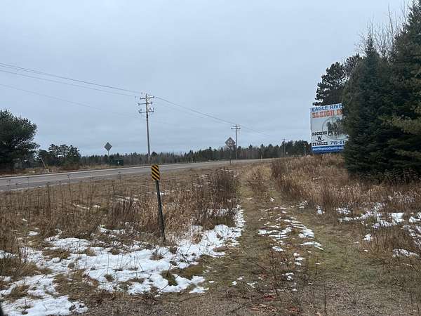 High visibility, location location location! This 7.36 acre (per tax rolls) parcel features approximately 500 feet of frontage on the Highway 45 bypass, and over 200 feet on Wall Street just on the edge of Eagle River. City sewer and water available on the north if you annex into the city, with an access point to Hwy 45 and one shared access point to Hwy 45. See the attached map; this parcel could have access from both Wall and Pine (Hwy 45) for the business venture that need to be viewed. This listing has been changed to add more frontage on the highway and the added access point, and the homestead is no longer included.