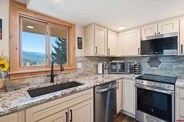 Ashley Blackmore, Blackmore Group, O: 970-444-2431, ashley@ashleyblackmorehomes.com, www.crenmls.com: There is a reason North Animas Valley living is among the most sought-after locations in Durango, Colorado. Proximity to the San Juan National Forest, sweeping valley views, dramatic red cliffs, and access to world-class golf and winter recreation define this exceptional setting. At this property, those lifestyle advantages are taken even further. Twelve private acres back directly into the San Juan National Forest, creating an unforgettable high-alpine backdrop with privacy, views, and immediate access to outdoor adventure. The premium parcel is improved with a fully remodeled luxury cabin featuring modern upgrades and high-end fit and finish. With no HOA and no covenants, the opportunities here are vast. Renovated from top to bottom in 2022, the 1,550 square foot mountain home is warm, inviting, and move-in ready. The interior offers two bedrooms plus a large bonus flex room, ideal for a bunk room, office, gear room, or additional sleeping space. An open-concept main living area is anchored by a stone fireplace and complemented by vaulted ceilings, abundant natural light, and tile flooring designed to resemble wood while offering durability and easy maintenance. The kitchen flows seamlessly into the living and dining areas and features granite countertops, updated cabinetry, and a layout designed for entertaining after a day in the mountains. A renovated full bathroom and main-level laundry provide comfort and convenience for year-round living. Outdoor living truly sets this property apart. A low-maintenance composite deck creates the perfect space for gathering, complete with an exterior fireplace ideal for morning coffee, sunset dinners, and star-filled nights overlooking the valley, with the San Juan Mountains as the backdrop. There is ample parking for toys, trailers, RVs, motorhomes, and off-road vehicles, making this property exceptionally well-suited for an adventure-driven lifestyle. With multiple potential building sites, the land also offers long-term versatility. Build a primary residence while keeping the cabin as a guest house, create a multi-structure mountain compound, or explore future development options through La Plata County planning. The property is zoned Large Lot Residential with a three-acre minimum lot size, with any subdivision subject to county approval. Practical features include a domestic well, septic system, LPEA electric service, propane baseboard heat, a durable metal roof, and a built-in backup generator, a valuable upgrade for mountain reliability. Located just 25 minutes from downtown Durango, this property offers both seclusion and convenience. Whether you are searching for a mountain cabin, a Colorado retreat on acreage, a no-HOA property, or a potential short-term rental near Purgatory, The King Cabin delivers the setting, lifestyle, and flexibility today's buyers are seeking.