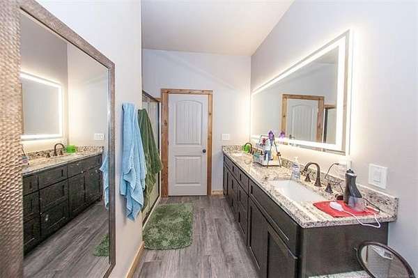 From Mannford: Hwy 51 west to S 449th Ave. Turn left on 449th. Go south about 3 miles to W 71st St. Turn LEFT into driveway entrance (Do not turn right on 71st). Driveway is about a mile long. Follow all the way up to the house and cabin. From Sapulpa: Hwy 66 to Hwy 33. Follow Hwy 33 to S 433rd. Turn right on 433rd. Turn left on W 91st, Turn right on 449th. Go north to W 71st and turn RIGHT into driveway entrance. Driveway is about a mile long. Follow all the way up to the house and cabin.