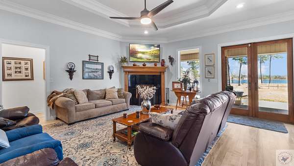 This gorgeous 1.76 acre property boasts 4 bedrooms and 2.5 bathrooms, perfectly situated to take advantage of the serene lakefront landscape. As you step inside, you'll be captivated by the abundant natural light that floods the living spaces, providing a warm and inviting atmosphere. The primary suite is a true sanctuary, featuring a relaxing soaking tub and a luxurious walk-in shower, ideal for unwinding after a long day. Step outside to discover your personal oasis for year-round enjoyment. The covered patio invites you to enjoy morning coffee or evening gatherings while soaking in the awe-inspiring views. With a private dock and pier, you have direct access to the tranquil waters, perfect for fishing or simply enjoying the peaceful ambiance. Additionally, the property includes a detached workshop building, providing endless possibilities for hobbies, projects, or extra storage. Located in a stunning area, this waterfront home is the perfect retreat for those seeking tranquility and beauty. Don't miss the chance to make this exquisite property your own!