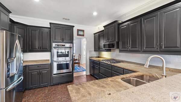 - Dishwasher, Disposal, Double Oven, Gas Cooktop, Gas Water Heater