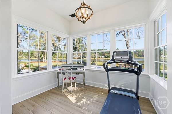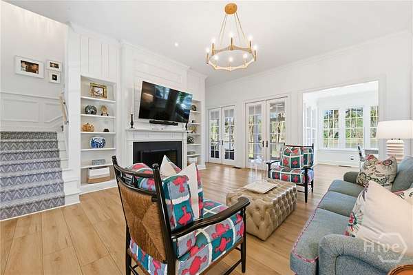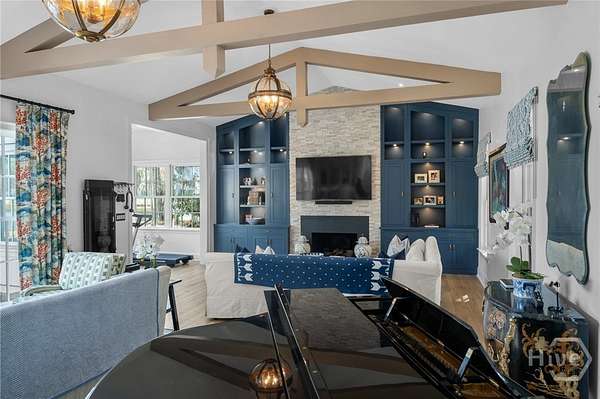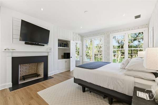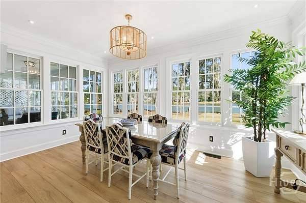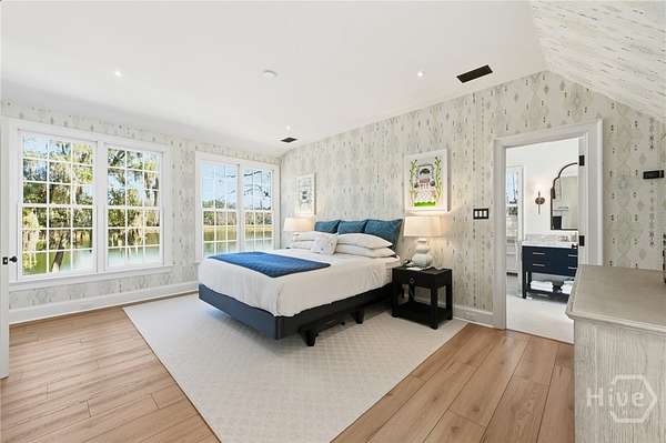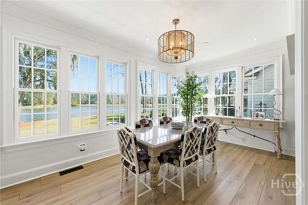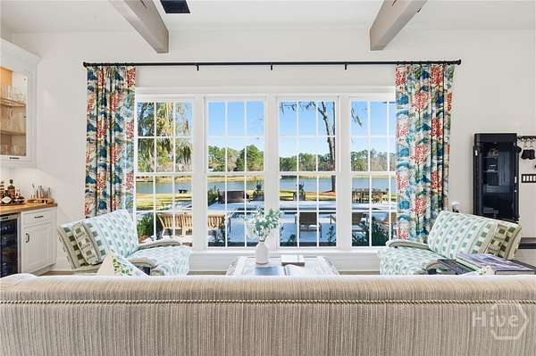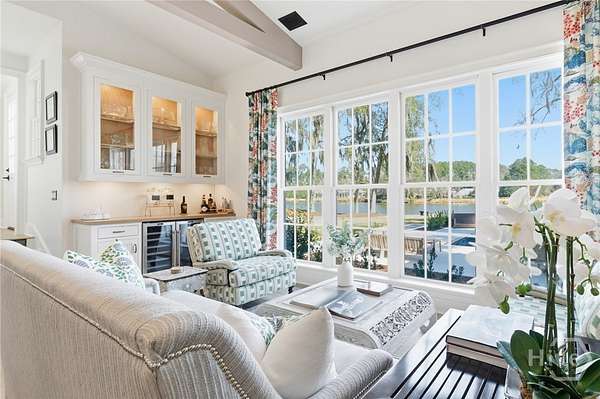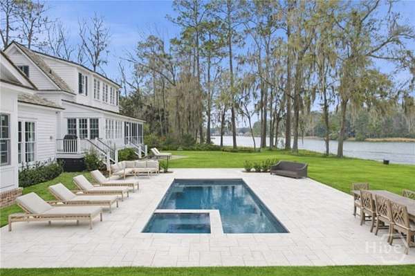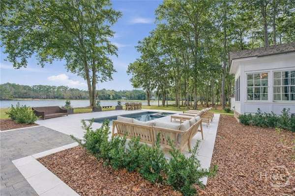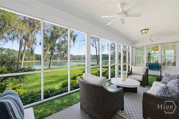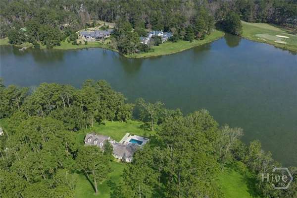 Introducing 437 Belted Kingfisher Lane, an extraordinary lakefront retreat in the prestigious Ford Field & River Club. Widely regarded as one of the most breathtaking waterfront properties in the community, this exceptional Low Country residence is perfectly sited on over two acres of park-like grounds, commanding nearly 180-degree panoramic views of Lake Sterling. Completely reimagined and meticulously updated, the home lives as brand new, fully turn-key, and move-in ready with refined designer finishes and thoughtful details throughout. At the center of the outdoor oasis is a stunning new pool and spa, beautifully framed by shell stone hardscaping and professionally designed landscaping, creating an unparalleled setting for relaxation and entertaining. The primary suite offers a serene sanctuary with sweeping views of the lake, pool, and abundant natural bird habitat. The home features three elegantly appointed bedrooms and four and a half luxurious bathrooms, complemented by a dramatic Great Room that serves as the heart of the residence. Soaring ceilings and walls of natural light create an inviting atmosphere of warmth and effortless sophistication. Designed for seamless indoor-outdoor living, the property invites you to fish from your private dock as ducks glide by, or unwind on the screened porch while watching eagles soar overhead. Additional features include a separate two-car garage, a dedicated enclosed golf cart structure, a sunroom, an expansive custom brick patio, and multiple curated outdoor living spaces ideal for year-round enjoyment. This is a rare opportunity to own a true lakefront masterpiece and experience the unparalleled lifestyle, natural beauty, and premier amenities of The Ford Field & River Club.