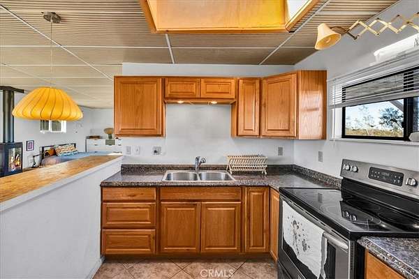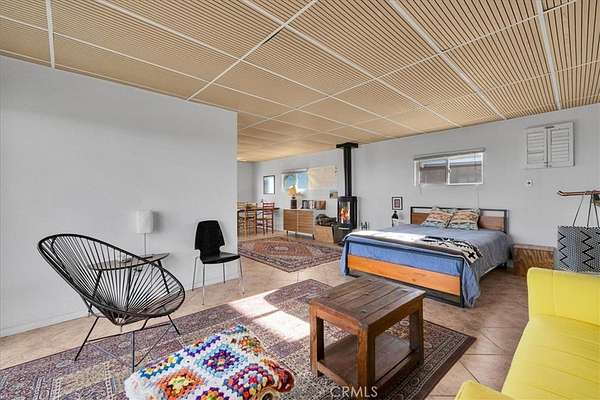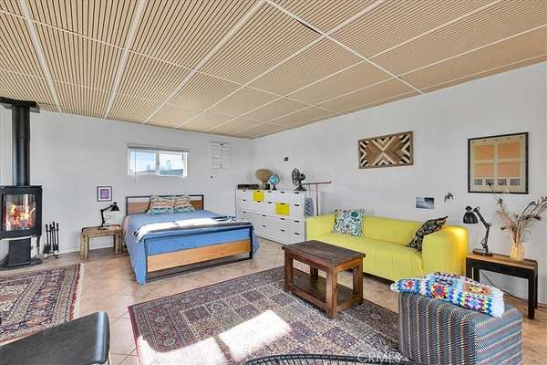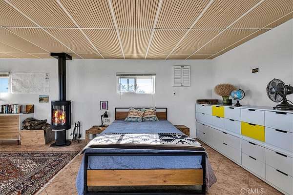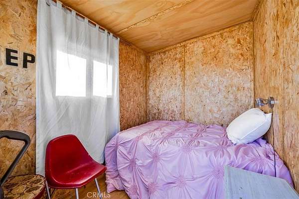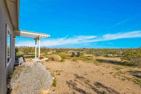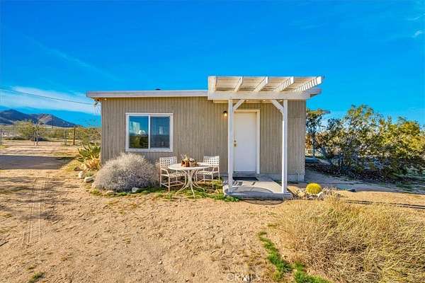 Set on 2,5 fully fenced acres adjacent to BLM land, this private single-family cabin offers open views, quiet surroundings, and a thoughtfully updated desert retreat. The 600-square-foot interior features concrete floors, newer appliances, and a light-filled kitchen with skylight. A recently installed modern Jotul woodstove provides warmth and comfort on chilly desert evenings. Sliding glass doors open to a covered patio, creating an easy indoor-outdoor flow and a welcoming space to enjoy the surrounding landscape. A fully insulated 110-square-foot shed adds flexible space for storage, studio use, or a workshop. Cactus plantings complement the natural setting, while minimal light pollution allows for clear, star-filled night skies. Private, peaceful, and efficient, this single-family residence is well suited for full-time living, a second home, or a quiet desert getaway with space, views, and privacy--all while being 15 minutes from the restaurants and hip shops of downtown and Joshua Tree National Park.
