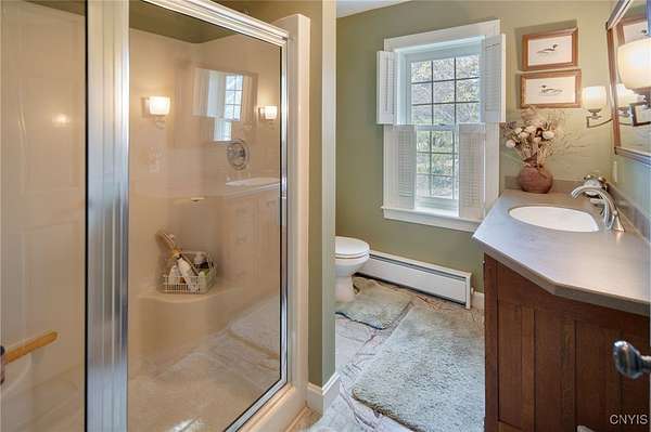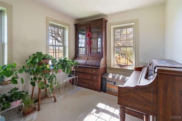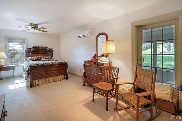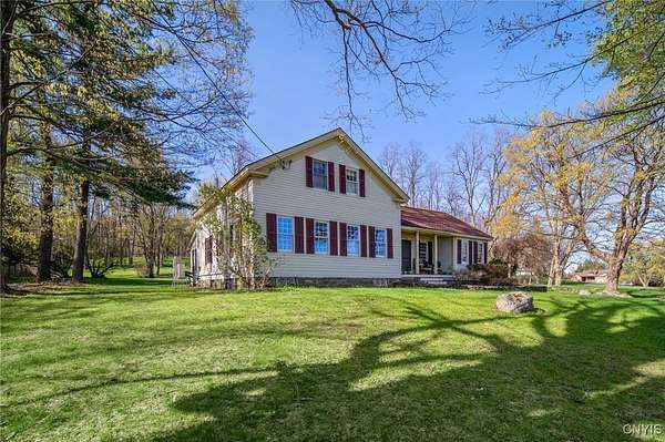 Come and admire this beautifully updated early 19th-century farmhouse that combines historic charm and modern convenience. Ideally located and thoughtfully renovated, this 2,400 sq ft home offers spacious living with a primary suite, laundry, office and half bath all on the first-floor. The open-concept kitchen and dining area-anchored by a cozy wood-burning fireplace-are ideal for everyday living and family gatherings. You'll love the flexibility of two comfortable living rooms and a large three-season porch, perfect for entertaining inside and outside. Upstairs, two generously sized bedrooms share a full bathroom featuring a skylight and tub. Outside, the nearly 2.5 acres includes mature trees, vibrant gardens, and two well-maintained outbuildings-a barn and a milkhouse-both with electricity, with ample storage. The basement is accessible by Bilco doors and houses a new electric hot water heater, electrical box and radon mediation system. This home is all electric with the exception of the gas range. Owners have purchased panels in a local solar farm bringing their summer cooling and hot water costs down to zero. Panels can be purchased separately if interested. A rare opportunity to enjoy country living with modern comforts and eco-friendly energy savings.