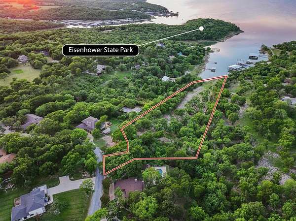 Situated on the third largest freshwater lake in Texas, you’ll find one of the RAREST lots on Lake Texoma! You will own all the way to the water’s edge with 181 feet of shoreline in a dockable cove all to yourself. Even better—approximately $125,000 worth of dirt work and land clearing has already been done for you, giving you a major head start. You can still dictate additional tree removal and truly make the property your own. This is an opportunity to create your family’s legacy lakefront estate with two homesites ready for your private family compound. Located outside of city limits with a low 1.61% tax rate, you’ll have the freedom to do what you want—plus free choice of builder. Water line is at the street, electricity is available; you’ll just need a septic system. You’re just 0.5 mile from Eisenhower State Park, where you can enjoy sandy beaches, plus miles of hiking, biking, ATV, and horse trails—and only 5 minutes from the Spillway Boat Ramp. While this property is tucked away near Ross Perot's Lake Texoma Estate, it is 2 miles away from the upcoming Preston Harbor community, which will offer lakefront dining options and the anticipated Margaritaville Resort. You’re surrounded by multimillion-dollar properties, including a neighboring home valued over $2M, and Denison’s highest-priced lake property at $10.9M right here in Thompson Heights—so you’re in very good company. The OPPORTUNITY to own lakefront property like this is NOW!