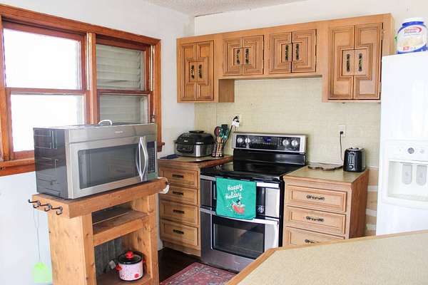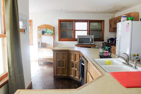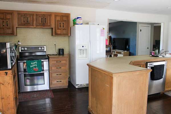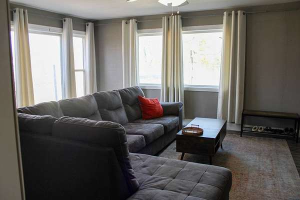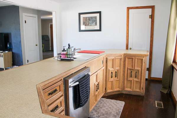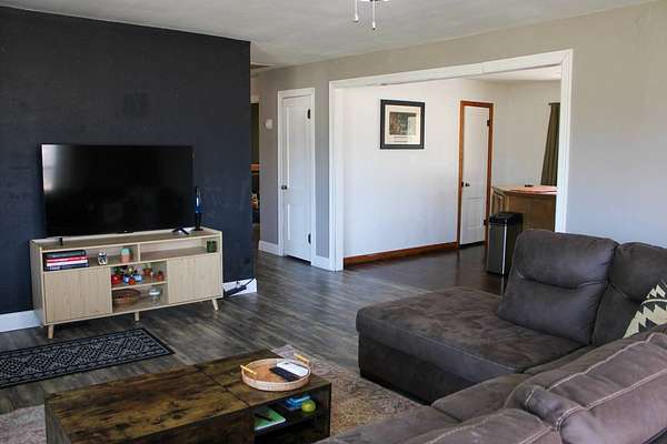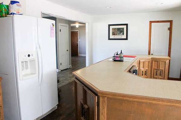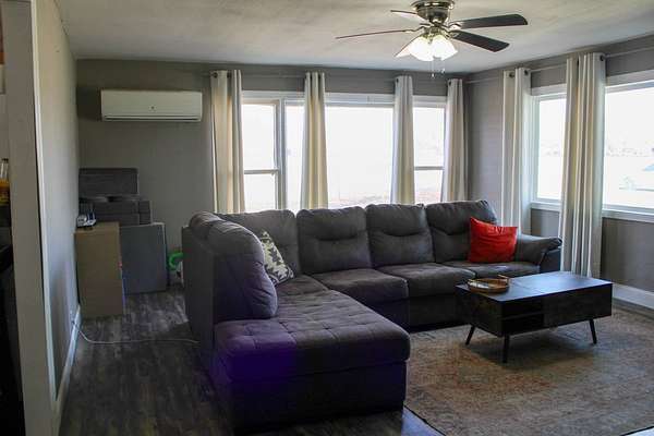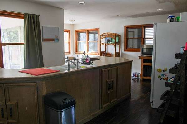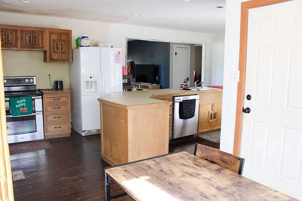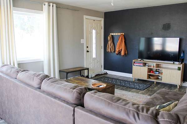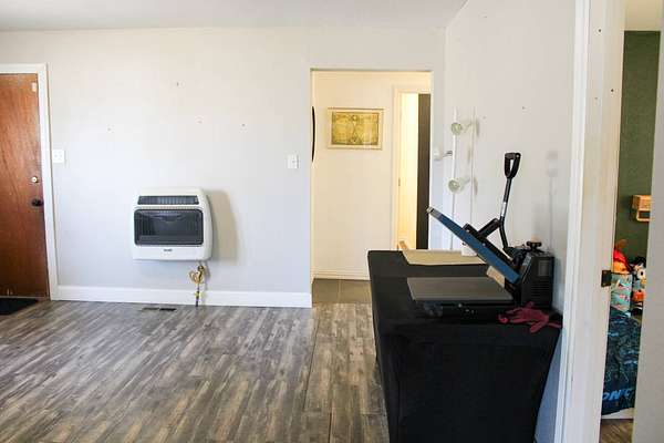 Est $660/mo2-bedroom, 1-bath home situated on fully fenced 2.56 acres. This property offers a spacious living room along with an additional open flex space suitable for a dining area, playroom, or second living space. The open kitchen features a large center island with ample counter and cabinet space. Quiet setting with room to enjoy the outdoors and plenty of potential.