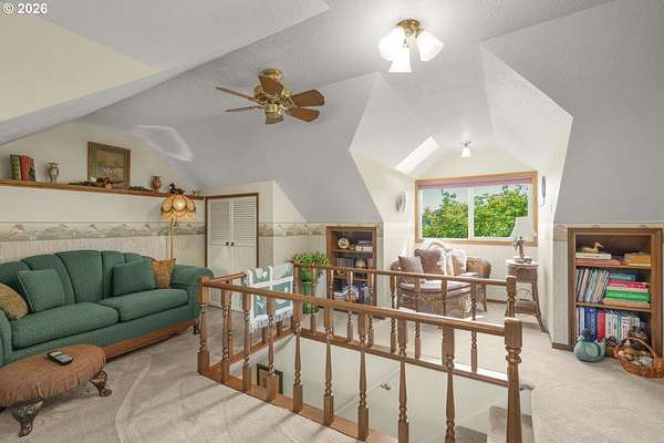 - Ceiling Fan, Laundry, Skylight, Tile Floor, Wallto Wall Carpet