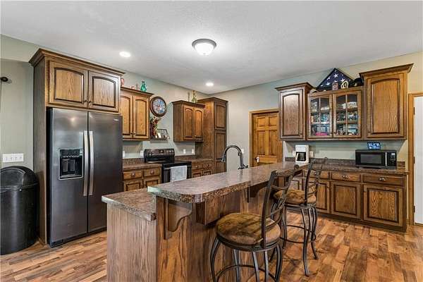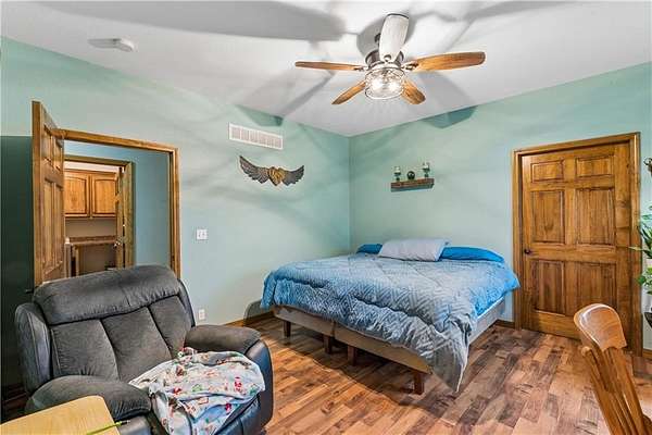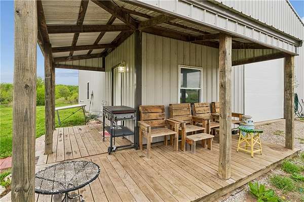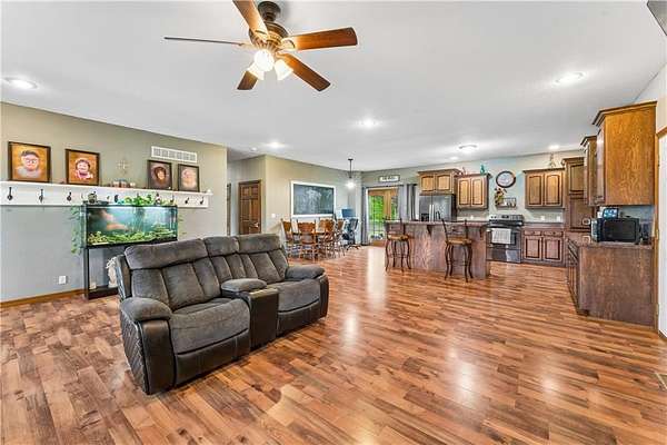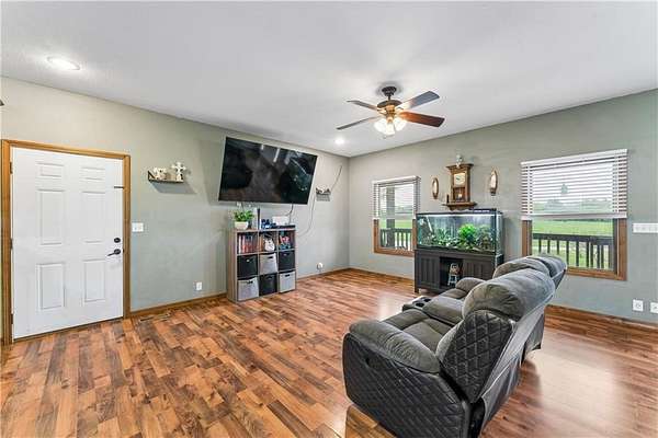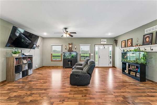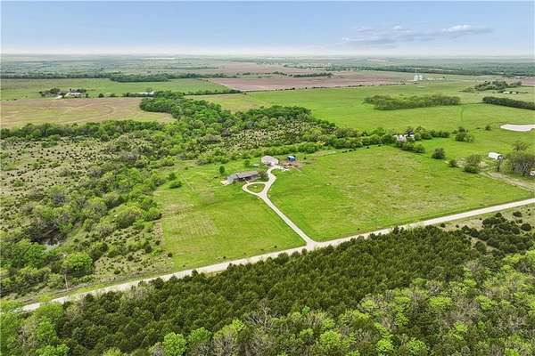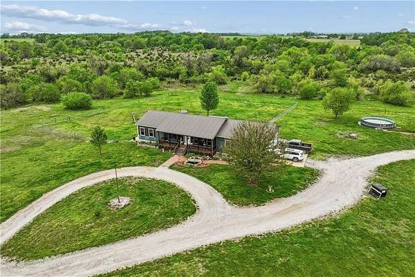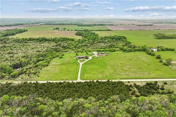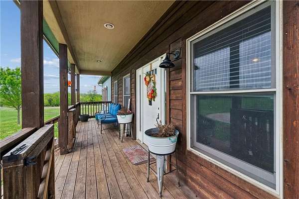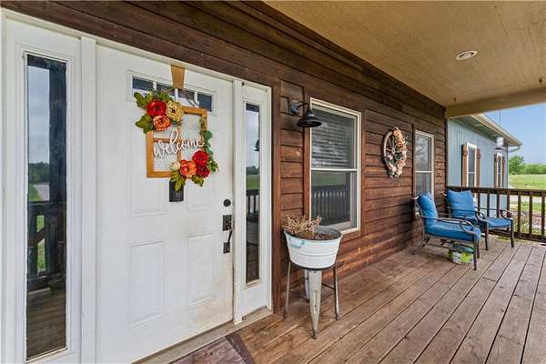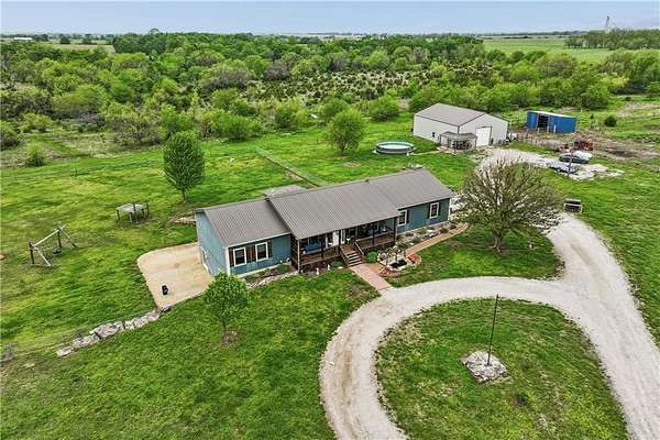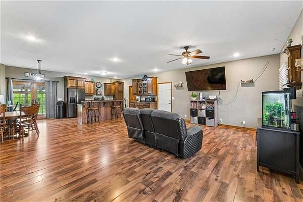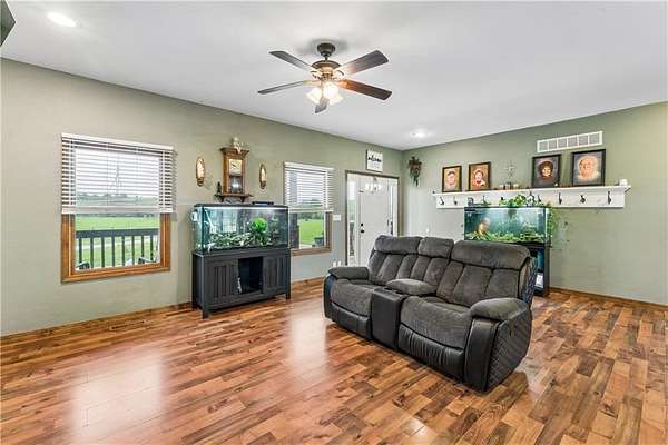 Beautiful Ranch Style that sits on 9.4 acres!! Don't let the outside fool you it is 3,292sqft..SOOO MUCH SPACE! Home features 4 bedrooms/2 Baths. Nice Open floor plan for all your entertaining needs! Kitchen is Open to Family room and features TONS of cabinets and island. Bedrooms are all Amazing sizes, 3 bedrooms main floor and one in the walkout basement. Full Finished Walkout Basement is HUGE! Family room/game area, Bedroom and still tons of storage area that is not finished. Basement also features a Concrete storm room. Also a 5th non conforming bedroom or office area. Don't forget about the 40x50 Outbuilding that features spray foam insulation, power, woodburning stove and super cute covered patio. Small Barn for all your animal needs. Property "backyard" is fully fenced.