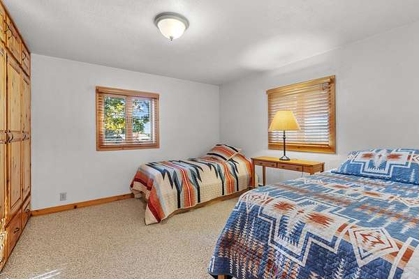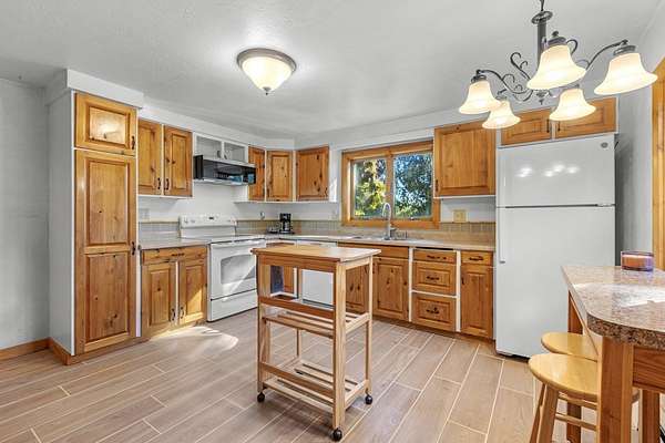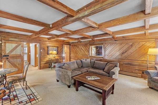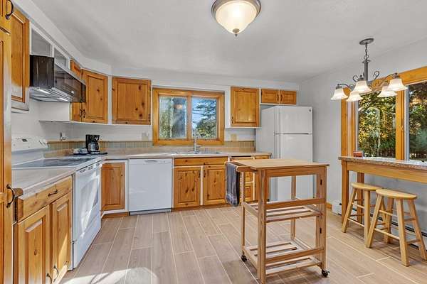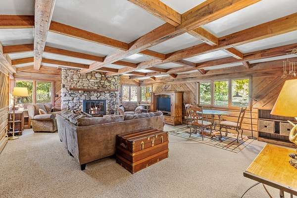 Est $2,161/moA handyperson's paradise with room to grow! This modest 2 bedroom 2 bath home has an spacious yard with ample sunlight for your gardens and partially wooded for exploring and collecting firewood for your wood burning stone fireplace. Get cozy in your large living room with tall beam ceilings. Additional flex living area with lovely light both day and night. Eat-in kitchen and custom cabinets throughout. Septic, well, siding and roof in 2007. Furnace and windows in 2014. Two car detached garage with carport and workshop. Heated 30 x 50 outbuilding perfect for starting that new business or hobby.
