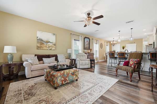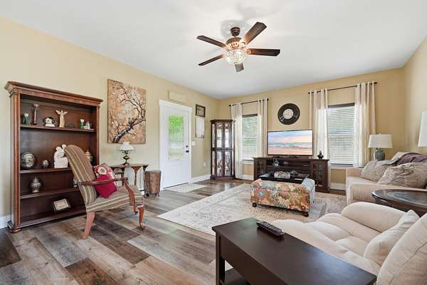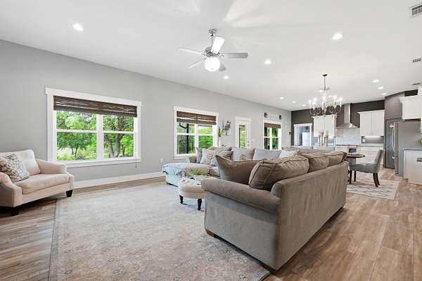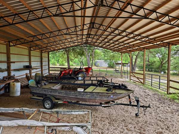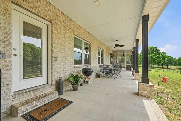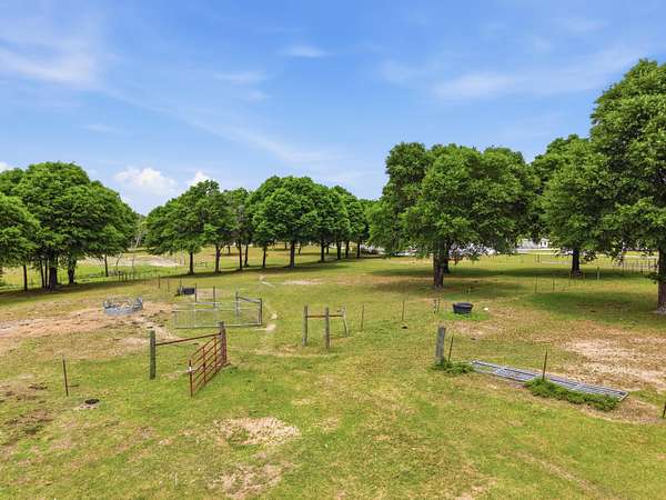 ONE-OF-A-KIND HIDDEN GEM - Dual-Residence Custom Country Estate on Nearly 14 Acres! Tucked away off a quiet road just off Highway 393, this breathtaking custom-built property offers nearly 14 acres of privacy, beauty, and endless opportunity. Built in 2020, this rare estate features two homes under one roof, making it ideal for multi-generational living, aging parents, adult children, Airbnb potential, rental income, and more. Zoned for agriculture, this stunning property is fully equipped for farming and livestock with five fenced pastures, all supplied by a deep water well, along with a picturesque creek bed running through the center of the property and mature trees scattered throughout. Additional outdoor features include a 40x61 pole barn, chicken coop, 11x24 storage building with porch, and ample space to build additional stables or livestock facilities. Current owners are actively raising chickens, cows, and donkeys, showcasing the property's incredible versatility. The main residence features luxury vinyl plank flooring throughout (no carpet) and high-end finishes at every turn. The open-concept layout includes a spacious living room, dining area, and a stunning gourmet kitchen complete with a Wolf gas range/oven, French door refrigerator, dishwasher, farmhouse sink, large granite island with counter-height seating, corner pantry, an abundance of white shaker cabinetry, and a fully equipped butler's pantry with an additional sink and ice machine. The spacious primary suite easily accommodates a king-size bedroom set and offers a spa-like ensuite bathroom featuring a double vanity, water closet, linen closet, and a massive tiled walk-in shower with dual shower heads. Two additional bedrooms--both with walk-in closets--are separated by a full bathroom. The oversized side-entry two-car garage is fully insulated and includes an automatic opener plus pull-down attic access with additional storage decking. The home's indoor laundry room is conveniently located near the primary suite and also connects to the second living space. A private entrance from the front porch leads to the second residence, which functions as a fully independent living space complete with its own living room, dining area, kitchen, and upscale finishes throughout. The kitchen includes granite countertops, breakfast bar seating, beautiful wood cabinetry, and stainless steel appliances. This private living space also includes a large primary suite with ensuite bathroom, a spacious bonus room ideal for a guest room, office, or flex space, and a dedicated 16x10 screened-in porch. Outdoor living is unmatched with multiple porches designed to take in the peaceful surroundings, including a 38x10 front porch, 60x10 back porch, 20x20 back porch, and 16x10 screened porch, all accented with beautiful Craftsman-style columns. Additional features include: Two water heaters (gas tankless + electric tank) Two HVAC systems (one for each residence) Rain gutters Public water to the home Well water dedicated for agricultural use This extraordinary property offers the perfect combination of luxury living, income potential, agricultural functionality, and unmatched privacy. Properties like this rarely come available--schedule your private showing today!