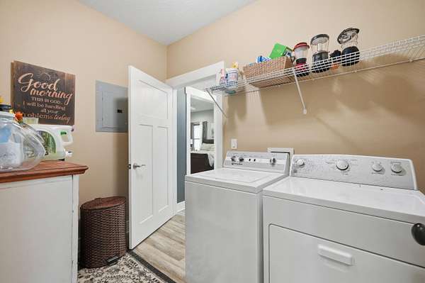- Breakfast Bar, Guest Quarters, Kitchen Island, Lighting Recessed, Pantry, Pull Down Stairs, Split Bedroom, Washer/Dryer Hookup