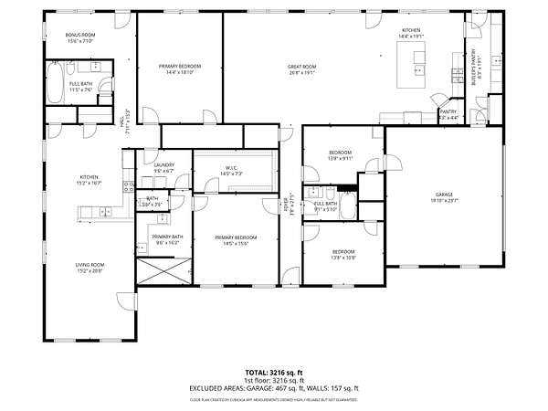 - Bathroom x 3, Bedroom x 4, Bonus Room, Dining Room, Laundry Room