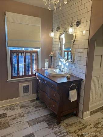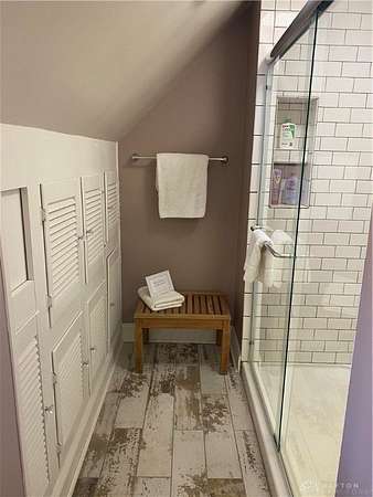 The entire upstairs is the private master suite that features a separate, sophisticated dressing room with a large closet with built in shelves, plus an opulent full bath with subway tile, shower, skylight and lots of built ins for storage.