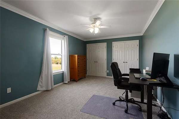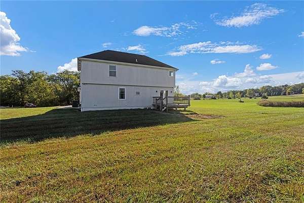 Welcome to 4373 Hackberry Lane, where peaceful country living meets modern comfort. Nestled on 5 flat acres in the Odessa School District, this stunning 4-bedroom, 4-bathroom home offers the space, privacy, and functionality you've been searching for. Step inside to an inviting home filled with natural light. The spacious eat-in kitchen features custom cabinetry, ample counter space, and a large dining area perfect for gatherings. The living room offers beautiful views of the surrounding acreage, making it the perfect place to relax and unwind. The tucked away family room offers a cozy fireplace, and extra room to entertain. The primary suite provides a private retreat with an ensuite bath, and walk-in closet. Downstairs, you'll find a finished area ideal for a 4th bedroom, entertaining, a home gym, or an office, with plenty of room for your lifestyle needs. Outside, enjoy the wide-open land featuring a large shop with electricity, perfect for hobbies, storage, or business use. A peaceful pond adds to the property's charm, making it ideal for nature lovers or anyone craving space to roam. Located just minutes from Interstate 70, this property offers quick access to nearby towns, shopping, dining, and the Kansas City area, all while maintaining the tranquility of rural Missouri living. Additional 5 acres available, with utilities in place, for buyers seeking more land.