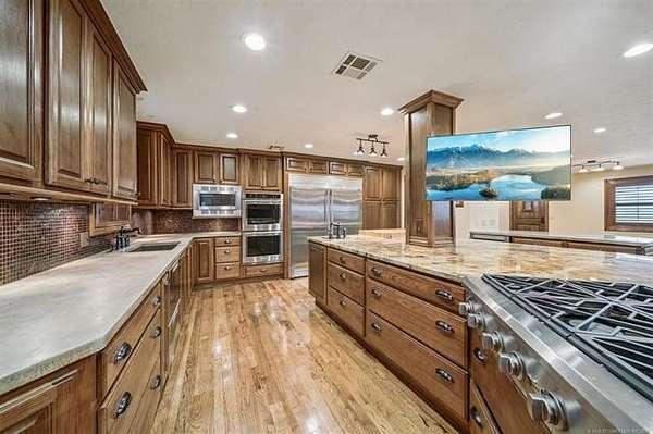 EXCEPTIONAL 60 ACRE M/L ESTATE 3BR, 2.5BA, 6 car garage $725,000 Beautifully maintained 3-bedroom, 2.5 bath home situated on approximately 60 acres +/- with pipe fencing, paved driveway, barn, and corral- perfect for country living with modern comfort. The kitchen is a chef's dream, featuring Electrolux double ovens, a built-in large refrigerator/freezer with icemaker, gas stove, pull-out drawers, walk-in pantry, easy-close KraftMaid cabinets, and stunning concrete and granite countertops. The spacious primary suite features a walk-in closet, a floor-to-ceiling tiled bath, and a separate soaking tub and shower. Additional highlights include plantation shutters throughout, a workout room with some equipment and a large safe. Enjoy year-round comfort in the 6-car garage with heat and air, complete with a sitting area and storm shelter. A 50-year metal roof adds long-term durability and peace of mind. Priced to sell at $725,000 - this exceptional property offers space, privacy and quality craftsmanship. House was originally listed on another site with house and 7 1/2 acres for 595k. Seller wants to sell the entire 60+/- with house and barn.