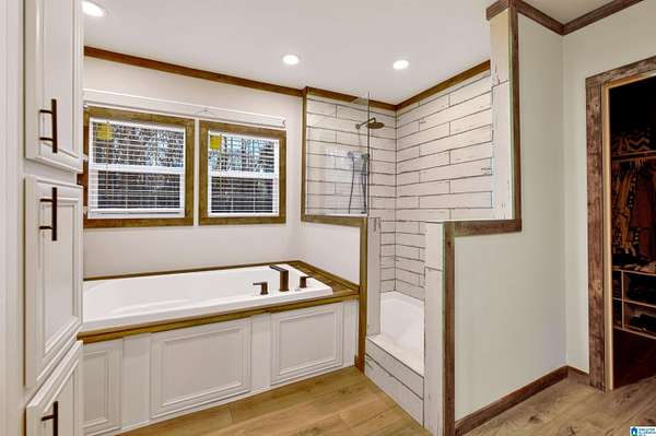 - Garden Tub, Recess Lighting, Separate Shower, Separate Vanities, Split Bedroom, Tub/Shower Combo, Walk-In Closets