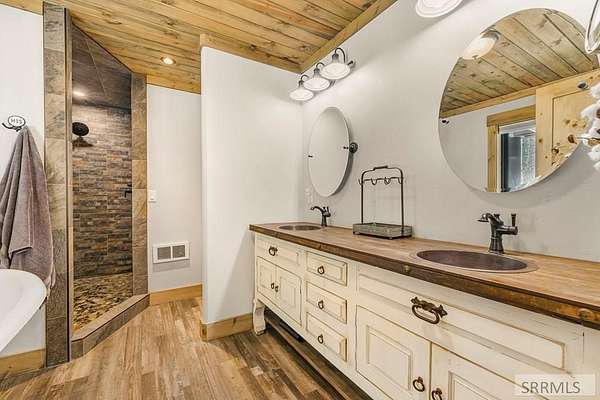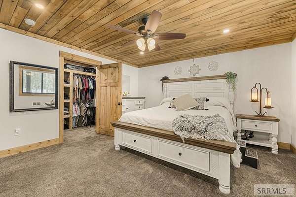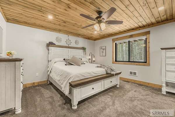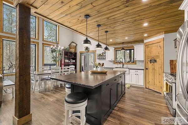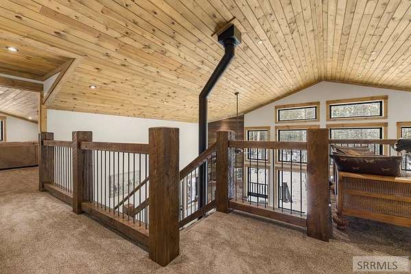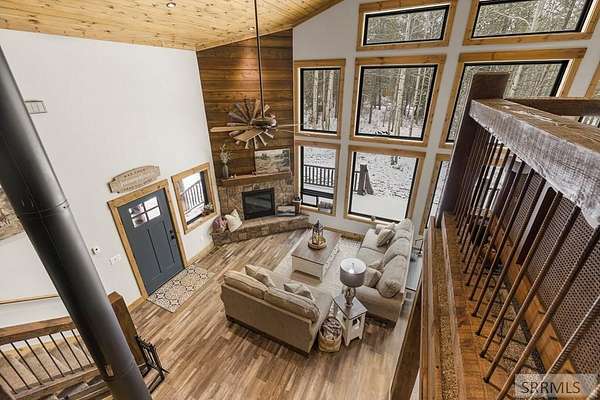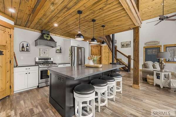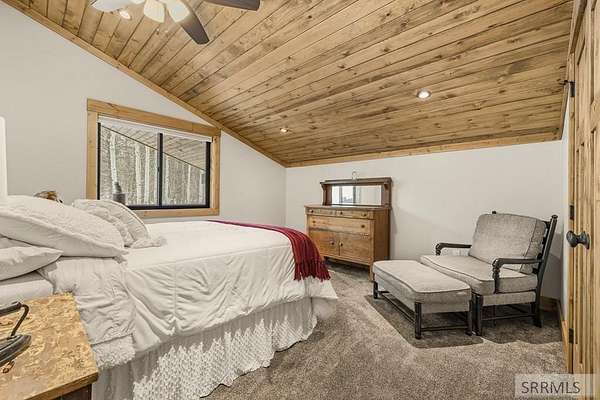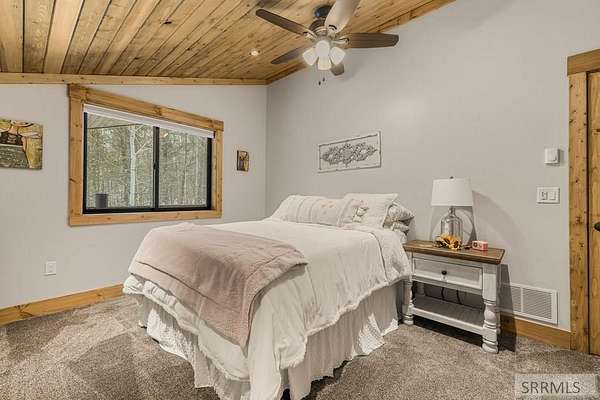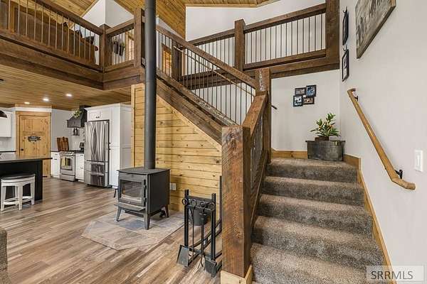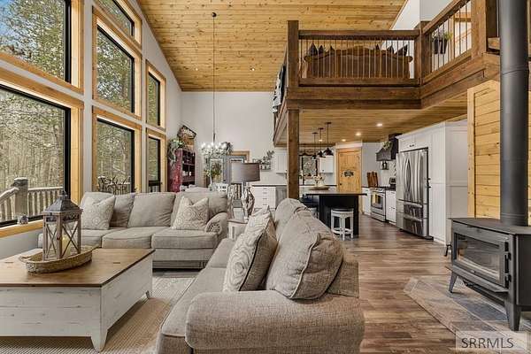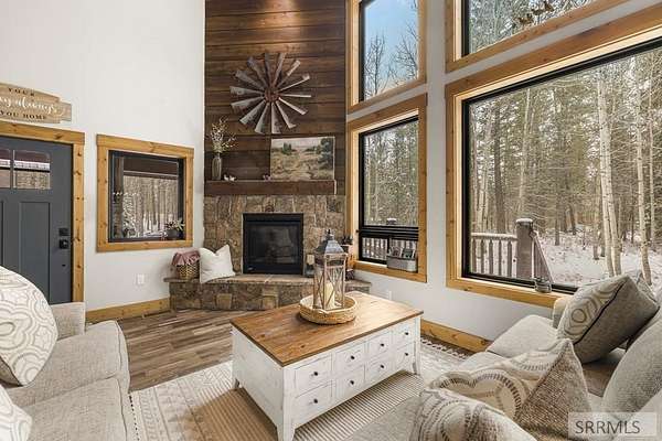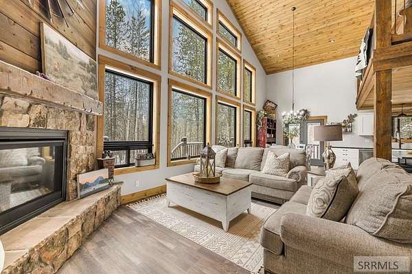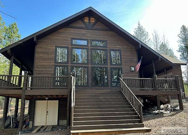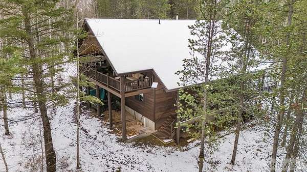 Classic Cabin Meets Modern Farmhouse. This Modern cabin is a stunning 2023-built home situated on 1.6 wooded acres bordering National Forest! This spacious 3144 sq foot home features a 3-bedroom residence with an open-concept main floor with soaring vaulted ceilings and durable, stylish new LVP flooring. The chef's kitchen features elegant granite countertops, a spacious pantry, and a premium gas cooktop, with a classic farmhouse sink perfectly positioned to overlook the serene National Forest. The master suite features a spa-inspired bathroom with his-and-hers sinks with elegant finishes, a deep free-standing soaking tub. The oversized walk-in shower is a true luxury, equipped with dual shower heads. Also included is a spacious walk in closet with ample storage. Relax on the expansive 3/4 wrap-around deck or escape to the private second-story balcony overlooking the forest. Above the garage, a massive vaulted bonus room serves as the ultimate media room, home office, or guest suite. Adventure is at your doorstep with community fishing creeks and immediate access to world-class hiking and snowmobiling trails. The 1,408 sq. ft. unfinished basement offers massive ground access storage for snowmobiles, dirt bikes, quads, kayaks and more. Bonus: Already plumbed for A/C.