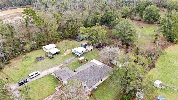 Welcome to this updated 4-bedroom, 2-bath home set on 4.37 acres. With tile flooring throughout, granite countertops, and a practical split floor plan, the home offers comfort, durability, and room to grow. Inside, you'll find spacious living areas and plenty of flexibility for work, hobbies, or extra storage. Outside, the property is already fenced for horses and include multiple storage areas, plus a convenient half bathroom. If you're looking for land space and a move-in ready home, with thoughtful updates, this property is ready to welcome you. The roof was replaced in 2023 with 40-year architectural shingles. HOOT aerobic sewer system with concrete lidded tops was added in 2023. A two-year prepaid sewer maintenance contract will transfer to the new homeowner. In August 2025, the HVAC system was replaced with a 23 Seer variable speed energy efficient unit and all new windows were installed.