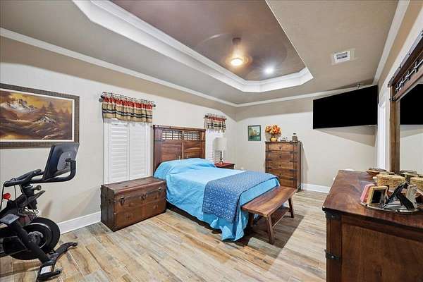 - Barn, Covered Patio, Covered Porch, Fence, Gutters, Pond(s), Storage Building(s)