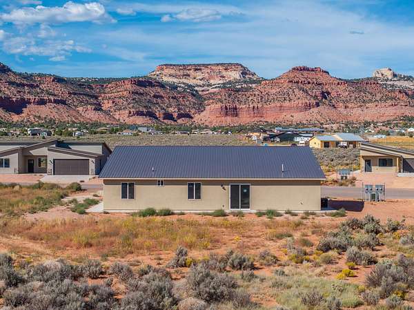 Discover your dream oasis in the heart of Sunflower Valley Estates, where luxurious living meets breathtaking scenery. This exceptional new construction residence is a perfect blend of comfort, elegance, and outdoor charm, nestled within the captivating landscapes of Kanab, Utah.Step into a spacious and meticulously designed 1,894 sq. ft. main home, boasting three serene bedrooms and two well-appointed bathrooms, including a master suite with a rejuvenating ensuite and expansive walk-in closet. The open-plan living space invites natural light and seamless flow, perfect for family gatherings or quiet evenings at home.Your guests or tenants will delight in the privacy of the 933 sq. ft. detached casita, complete with two cozy bedrooms and two full bathrooms. Buyer to verify all.