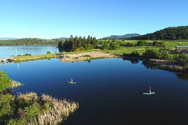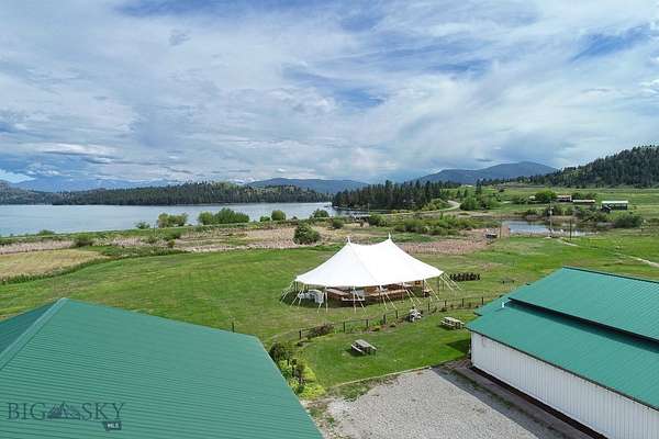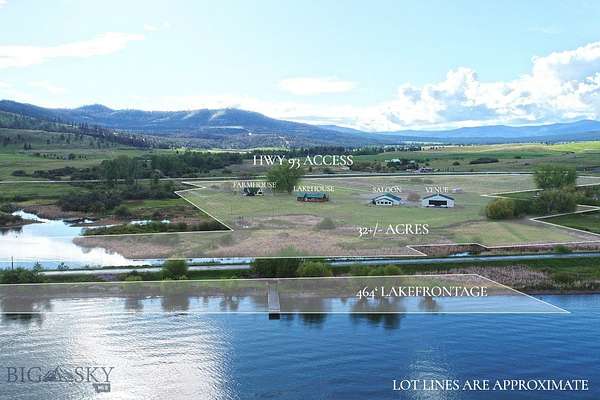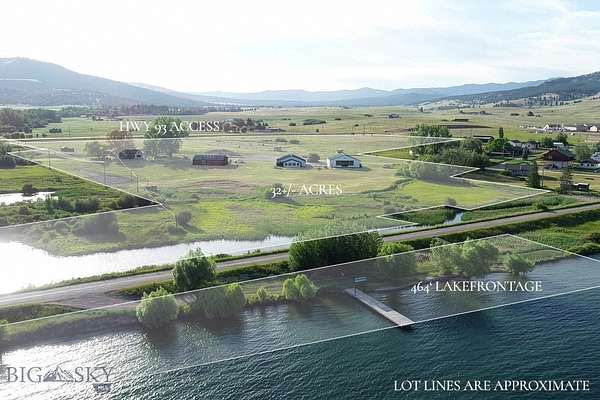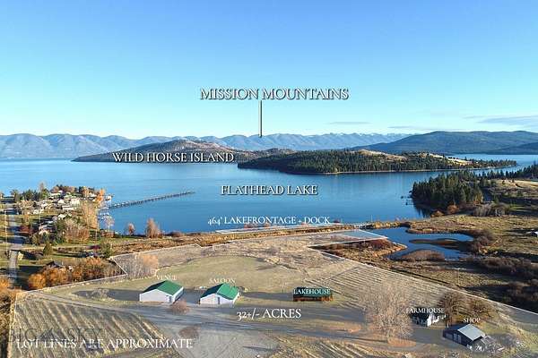 Experience one of the most versatile and visually striking properties on Flathead Lake. Set on 32.55 acres with 464 feet of premier waterfront, this estate combines privacy, scale, and functionality in a way that's increasingly hard to find. Dayton Creek winds through the property, adding a rare natural feature that enhances both the setting and usability of the land. The main lake residence offers 1,589 square feet with three bedrooms and two bathrooms, positioned to capture unobstructed views of Flathead Lake and Wild Horse Island. Designed for easy lake living, it features a custom rock fireplace, expansive deck, and seamless indoor outdoor flow for entertaining or quiet evenings looking over the water. A secondary residence adds both flexibility and character. Originally built in 1908, the 916 square foot farmhouse includes one bedroom, two bonus rooms, one bathroom, and a 326 square foot finished attic. Surrounded by mature cottonwoods and a private yard, it offers a distinct setting for guests or extended stays. The improvements on this property set it apart. A 3,132 square foot winery building includes a private saloon with lake views, a large shop and storage area with floor drains, two 1,200 gallon water storage tanks with irrigation to RV pad locations, and 200 amp electrical service. The 2,988 square foot venue building is designed for gatherings, featuring a glass overhead door, expansive windows with lake and mountain views, seating capacity for approximately 150 guests, ceiling sound panels, and an outdoor 25 by 60 foot patio with party lighting. Additional infrastructure includes a 30 by 40 shop and 33 gravel RV pads with water and electric. Whether used as a private lakefront retreat, multi generational compound, event venue, or income producing investment, this property offers a rare combination of frontage, acreage, and built infrastructure on the LARGEST freshwater lake west of the Mississippi!