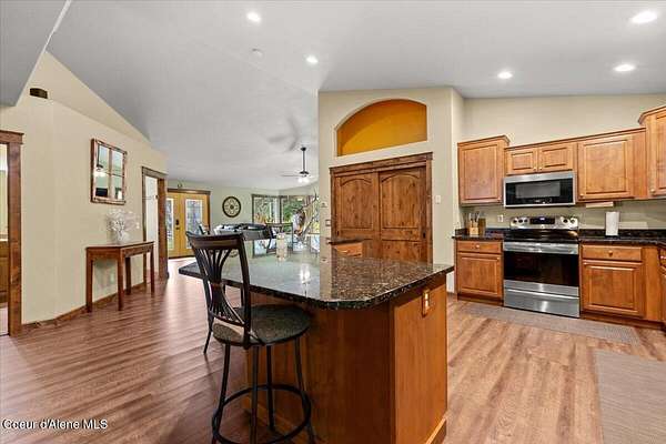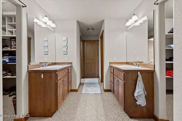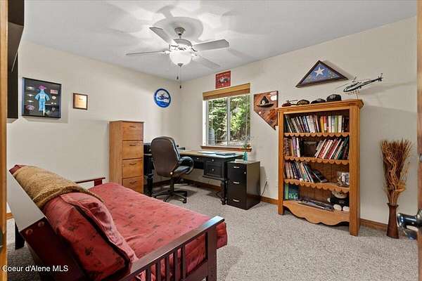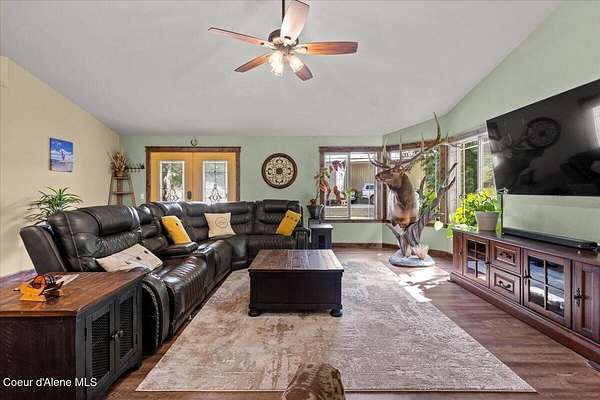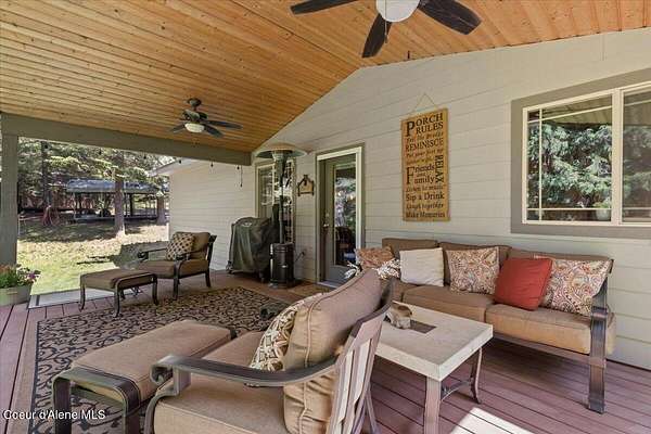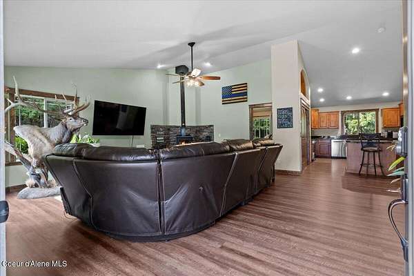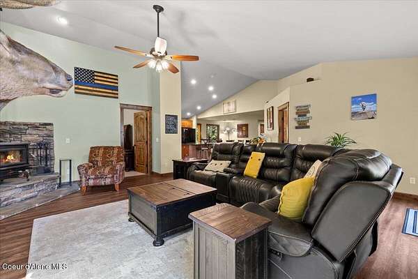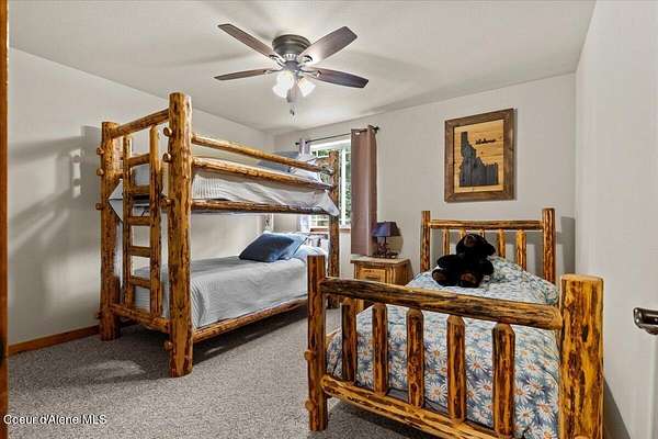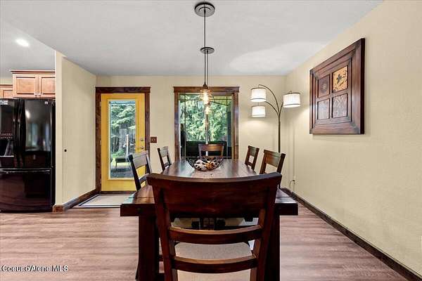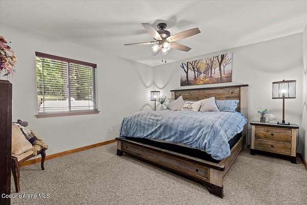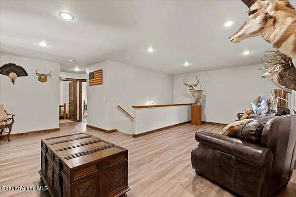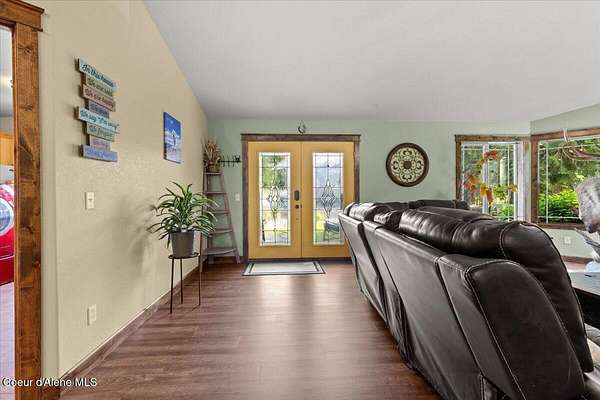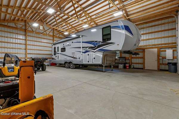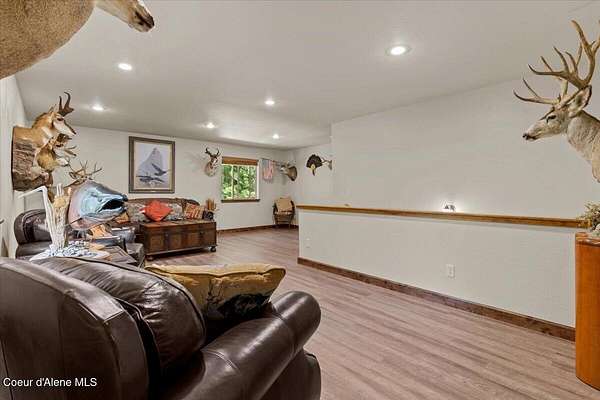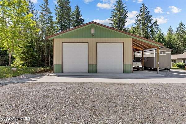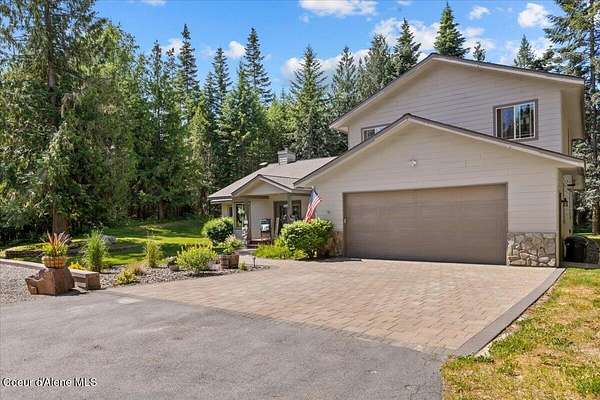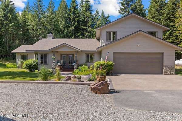 This private, treed 5-acre property features a spacious 3,300+ sq ft home with an open-concept layout, 5 bedrooms, 3 full baths, two separate living spaces, and a standout 36'x48' shop. Downstairs, the family room opens to a kitchen with ample cabinetry, a custom sliding knotty alder pantry door, large island, and dining space. Recent updates include luxury vinyl plank flooring, custom doors, window casings, and baseboards throughout the downstairs living area. A wood stove provides cozy heat, while extra-large windows offer views of snow and wildlife. The master suite has two walk-in closets, dual sinks, a separate jetted tub room, and private shower. Two additional downstairs bedrooms each feature large walk-in closets and share a full bath. Upstairs, a generous living room/game room includes new luxury vinyl plank flooring, custom window panels, and baseboards, along with two bedrooms that have oversized walk-in closets and a full bath. The entire home is heated by.... ....radiant in-floor systems, supplemented by the wood stove. An extra-large two-car garage with 18' door easily fits two vehicles and storage. Step out onto the back deck for sunny relaxation surrounded by peace and quiet. The 36'x48' shop, built with durable post-frame construction and metal siding/roofing, is ideal for storing vehicles, RVs, boats, and or use as a hobby shop. It features two 12'x14' rolling doors and a 12'x48' attached lean-to for additional covered space. The location offers easy access to recreation: 20 minutes to Sandpoint City Beach and boat launch, 26 miles to Schweitzer Ski Resort, 20 minutes to the Bayview/Farragut boat launch on Lake Pend Oreille, 33 miles to Lake Coeur d'Alene, and only 5 minutes to Lake Cocolalla for trout and bass fishing plus other water activities. Hundreds of biking and hiking trails extend in every direction. A practical, well-equipped home in a prime recreational area.