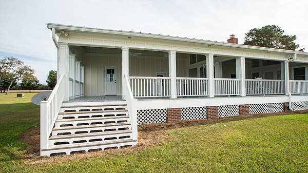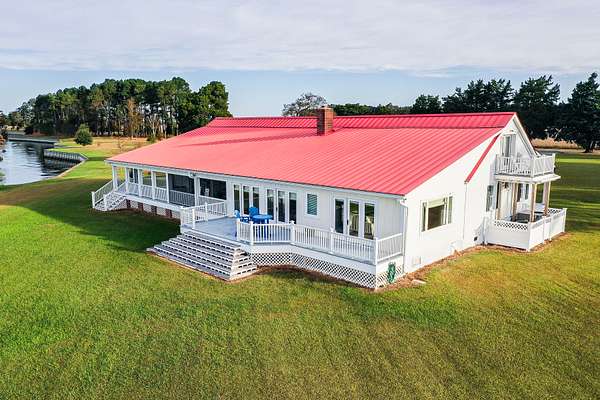 Driving further down the gravel road brings you to the farm house located on the southeastern corner of the property. It sits along the Perquimans river and boasts a 4080 square foot floor plan! The original structure was built in 1978 and has been completely updated and renovated by the current owners starting in 2014!