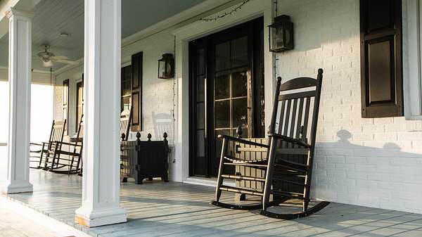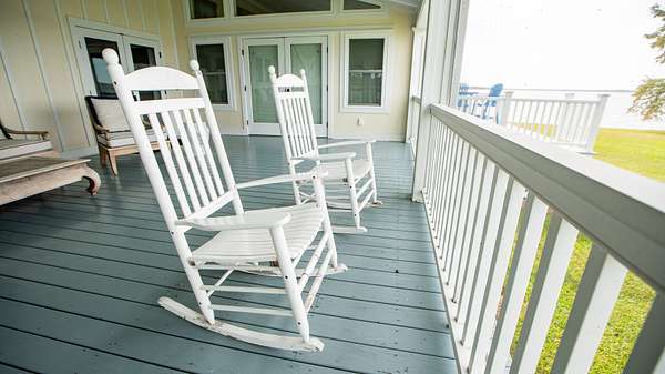 Plenty of rocking chairs fill up the front porch for those lazy Sunday afternoons surrounded by family and friends.