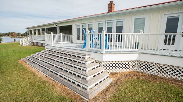 Out from there is the oversized sunroom that overlooks the yard and Perquimans river to the south, east and west! This is the owner's favorite room in the home and it has provided tons of great moments visiting with friends, enjoying a good book or just soaking in the view out of the large doors and windows!