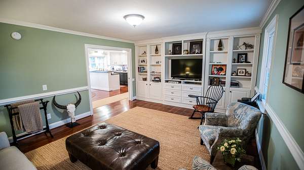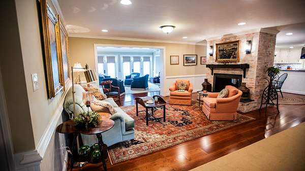 Next is the living room with plenty of space for entertaining family and friends. The den is on the back side of the fireplace with plenty of room to sit and enjoy a warm fire with a good book or guests.
