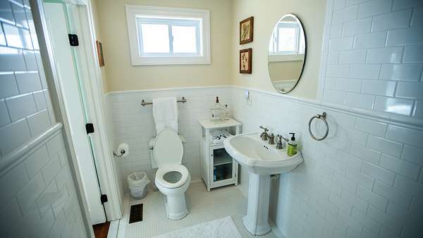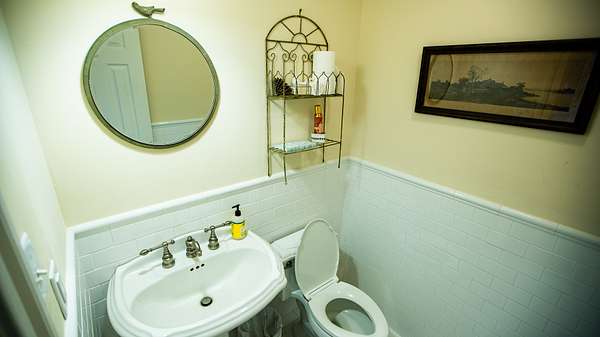 Opposite of the owner's suite is the main floor guest bedroom complete with it's on full bathroom. In between both bedrooms is the home's only half bathroom.