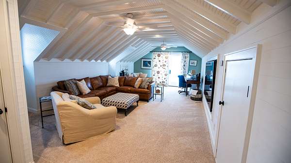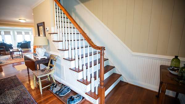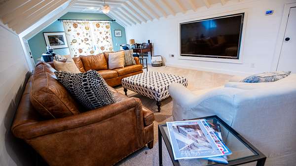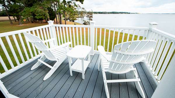A hardwood staircase leads you upstairs to the large recreation home that can be a great gathering room for kids or to watch the big game on the TV! Just off to the side is a small balcony that provides scenic views of the southwestern boundary along the Perquimans river and Sutton Creek.
