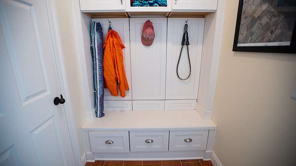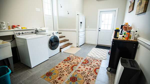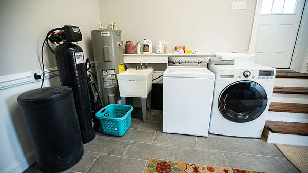 The utility room is laid out to accommodate a refrigerator/freezer, washer and dryer, hot water heater, water filtration system and other storage. You can access this room from the garage, the side door or the back porch.