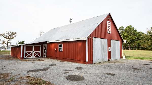 Closer to the western end of the property sits the barn. It is currently used for equipment storage. The barn measures 50 feet by 30 feet with some extra spaces on the back left side.