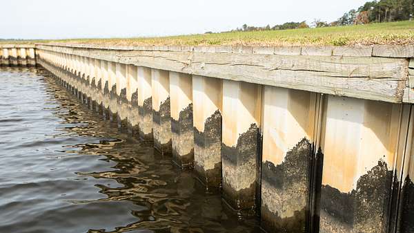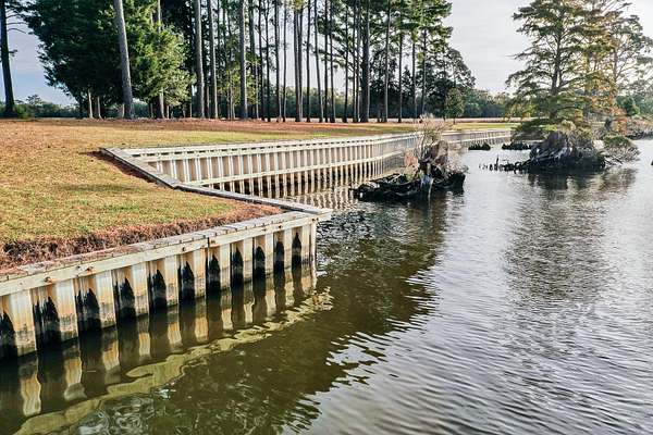 As you enter the gate off Bundys Road, you drive down the private gravel driveway that runs along the Perquimans river. For well over a mile, this waterfront boundary has been completely covered with bulkhead. This vertical wall composed of steel, wood and concrete has helped to provide extreme protection against the erosion caused by the constant colliding of water along the river's edge. It not only helps to protect the erosion but also provides a huge value to the entire property. This project began in 2013 and was officially completed in 2022 and it has been maintained to the fullest extent by the owners.