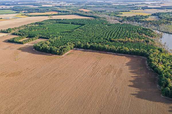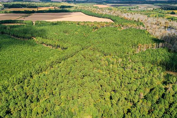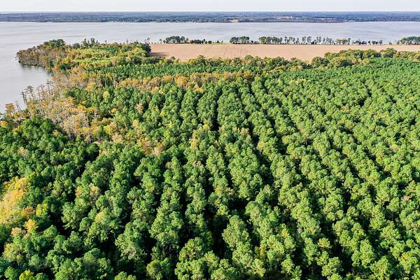 The waterfront boundary has a heavy duty bulkhead boundary to protect both the land and the river from erosion issues. You also have over 250 acres of fertile tillable ground that is currently being farmed by a local farmer that rotates crops each year, mainly switching back and forth between soybeans and corn. The 275+/- acres of timber ground is a mixture of planted pines of various ages and a lot of different hardwood trees. These hardwoods existt mostly along the eastern side of the property from the northeastern boundary all the way south along Sutton Creek.