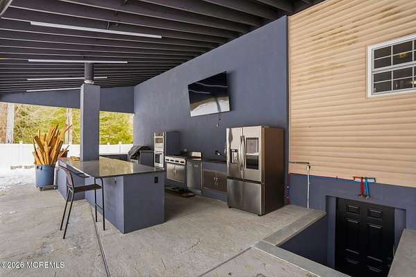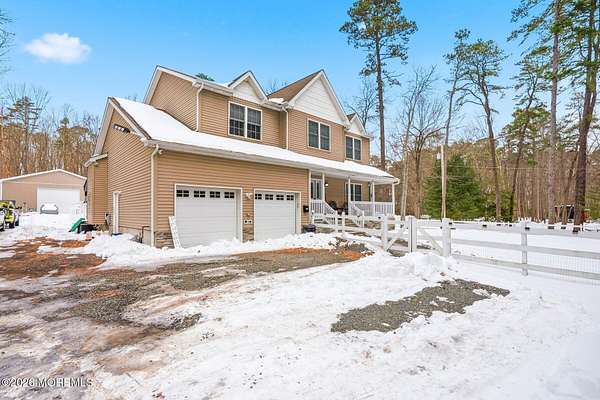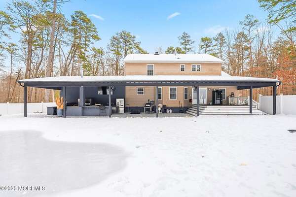 A rare lifestyle property blending modern comfort and country charm featuring poolside living, an outdoor kitchen, a handyman's dream pole barn, and a chicken coop. Tucked down a private road, this beautifully maintained and thoughtfully upgraded 4-bedroom, 2.1-bath home welcomes you with space, privacy, and versatility. Set on a generous 2.41-acre lot, the professionally designed backyard retreat is fully fenced and BRAND NEW, showcasing a saltwater, heated in-ground pool with lifetime liner, Trex decking, and a stamped concrete patio ideal for large gatherings. The outdoor kitchen is covered and lit with built in fans, complete with a pizza oven, 8-burner stove, granite countertops, sink, refrigerator, dishwasher, wood oven, double fridge, and ample storage drawers perfect for summer BBQs and year-round enjoyment. The massive 60x40 pole barn features concrete flooring, electric, and an automatic door, making it ideal for a workshop, equipment, machinery, vehicle storage, or hobbies. A 60x30 chicken coop with a metal roof adds a touch of authentic country living. Inside, the home offers an inviting foyer, 3/4" solid oak hardwood flooring throughout the main level, formal dining room, half bath, and kitchen with center island overlooking the backyard. The kitchen opens to a family room with a gas fireplace and sliders to the backyard. The staircase features LED kick plates for a modern touch. Upstairs offers engineered hardwood flooring, a spacious primary bedroom with 10' ceilings, an ensuite jacuzzi with stall shower, a walk-in closet plus a second closet, three additional bedrooms, a remodeled main bath, and a laundry room. The fully finished basement has laminate flooring, including a wet bar with refrigerator, full bath, movie room, utility room, and stairs to the backyard. Exterior highlights include 16 security cameras, a motor-home charging station, and a manual gas generator. The attached, oversized two-car garage includes a pet washing station. With extensive upgrades inside and out, exceptional outdoor amenities, and a layout designed for both comfort and entertaining, this home offers a rare blend of lifestyle, functionality, and privacy. Enjoy Jackson Twp!